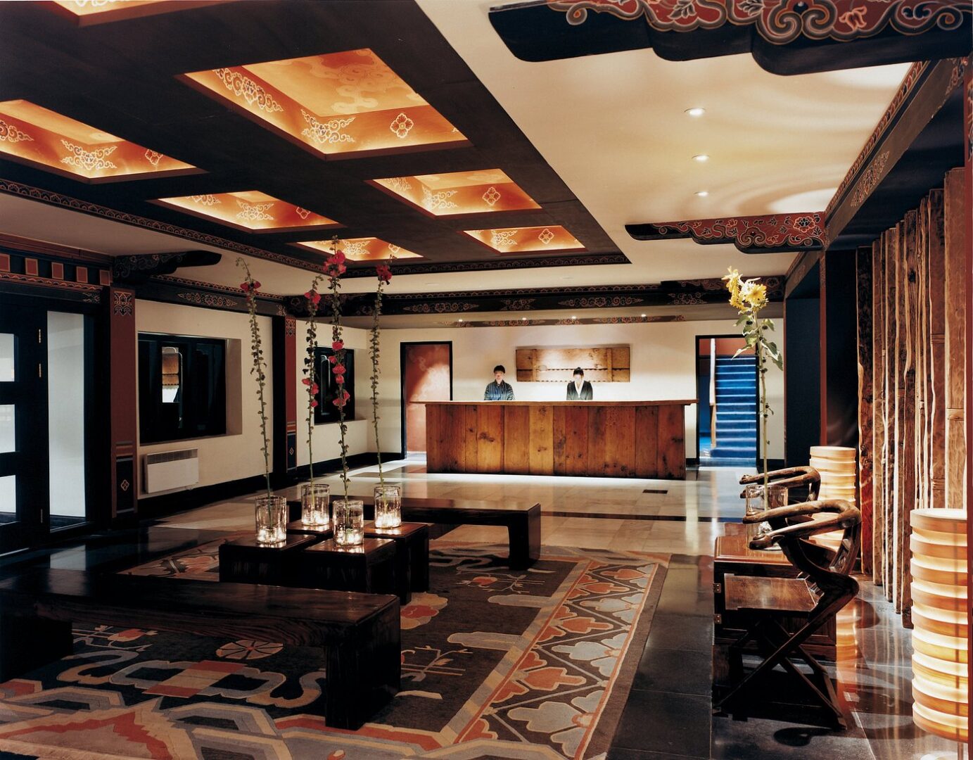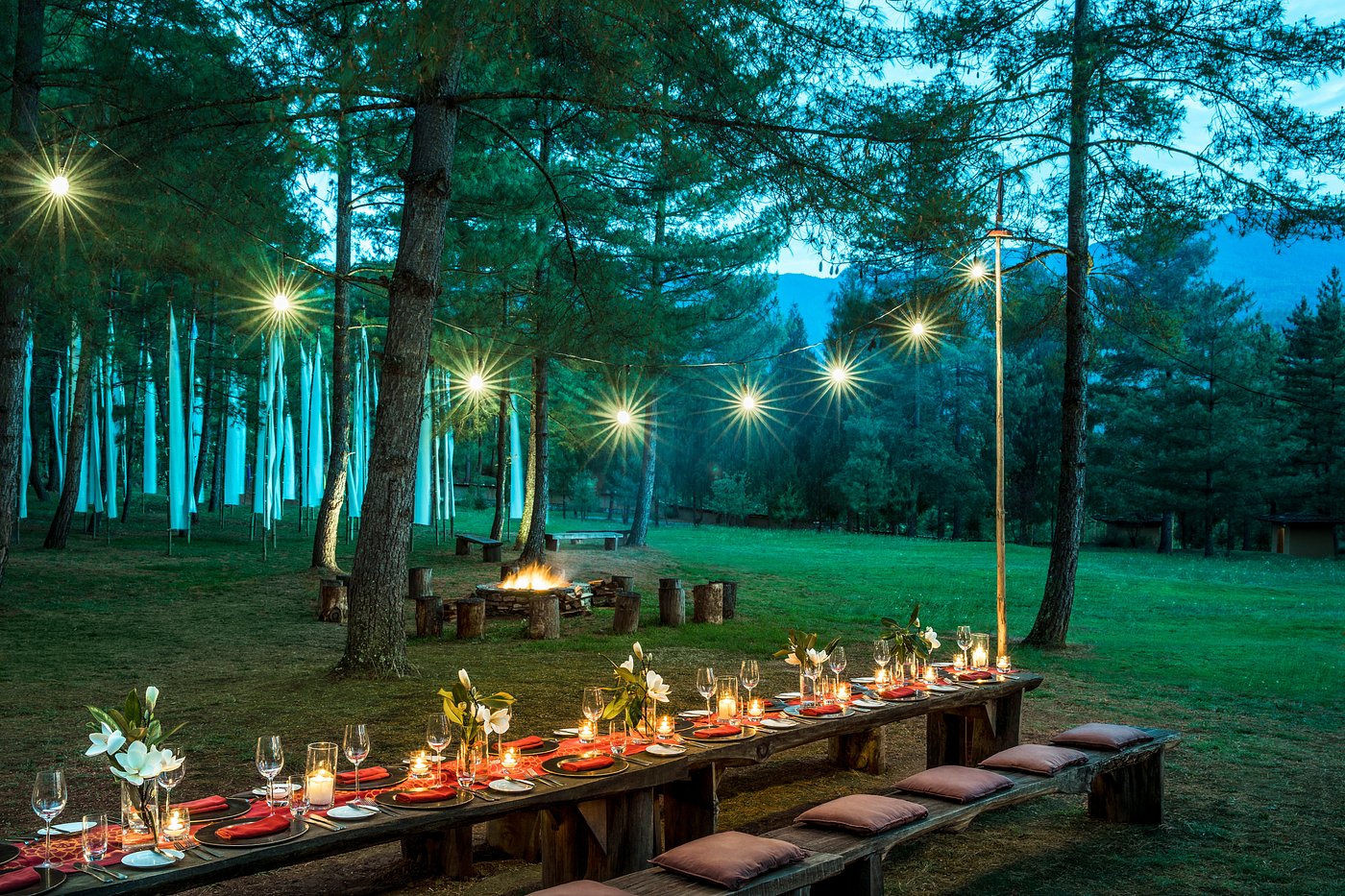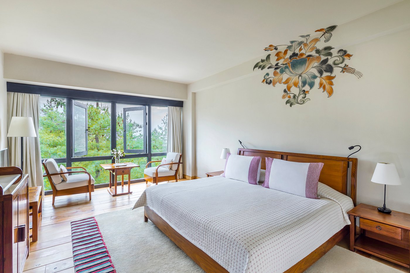COMO Uma Paro is a 5-star hotel offering sweeping views of the pristine Himalayas from its 37-acre estate, perched overlooking the valley from a gently sloping mountainside. The hotel comprises of 20 rooms and nine villas, each overlooking the pine-covered mountains, and featuring amenities such as handmade furniture, Italian linens, hand-painted traditional Bhutanese wall designs, Wifi, and an in-room bar and coffee/tea facilities. Guests can enjoy complimentary daily yoga classes, an indoor swimming pool, a gym and spa with multiple treatment rooms, an archery field, a cozy bar and lounge, and an award-winning restaurant featuring ingredients sourced from the organic garden.