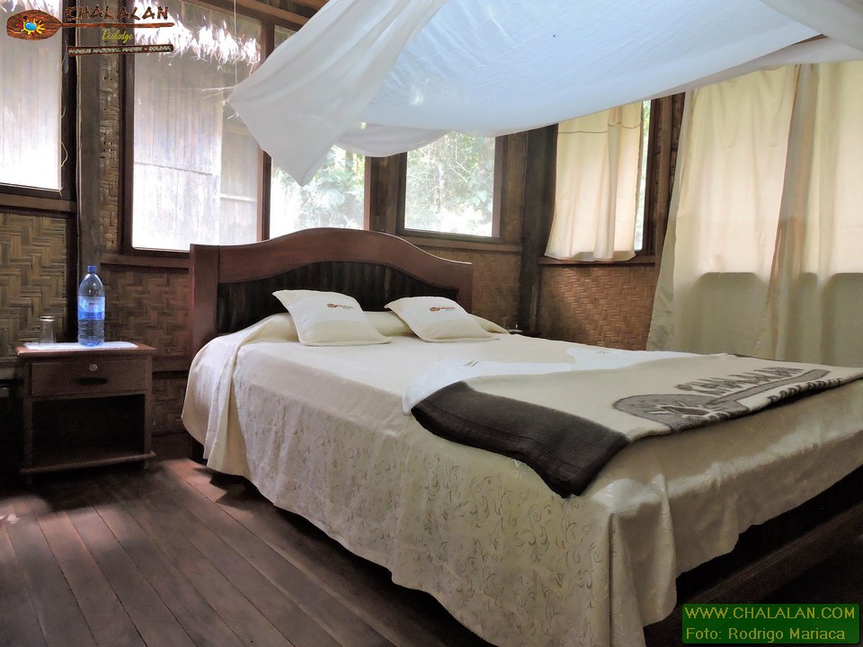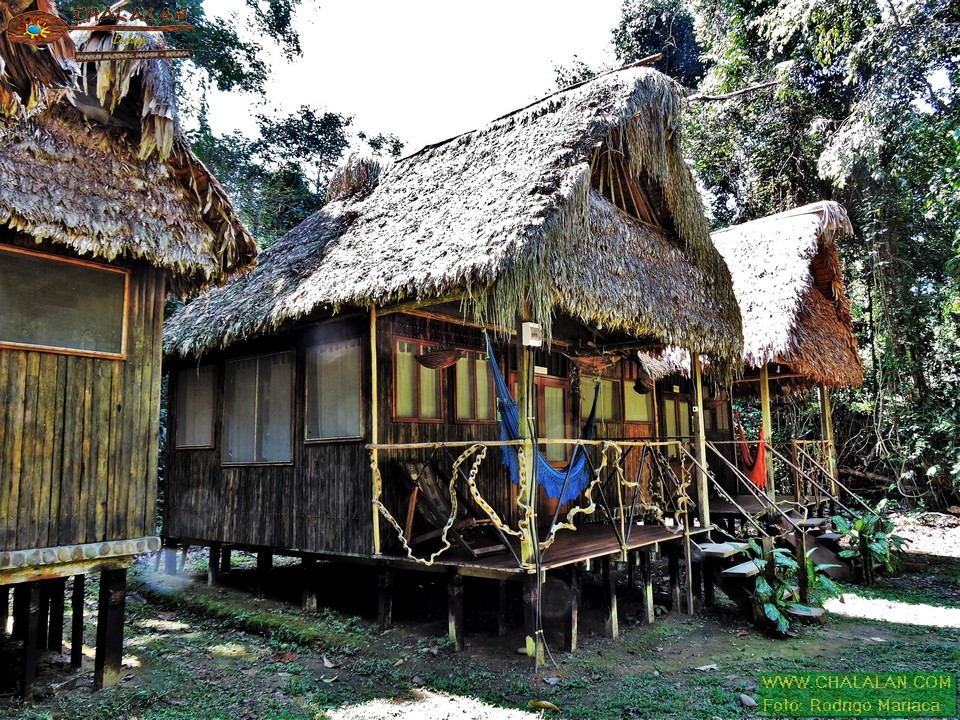 The Chalalán Ecolodge is set in Madidi National Park, on the shore of Chalalán Lagoon. The lodge is constructed of local materials in the traditional building style of the local community, San José de Uchupiamonas. The project was designed and is run by the Uchupiamonas community, and evinces a strong commitment to community development and wildlife preservation. The 14 traditional Tacana-style cabins are surrounded by virgin forest; each cabin is equipped with mosquito nets, a veranda or balcony, and hammocks. The property includes a dining room and bar.