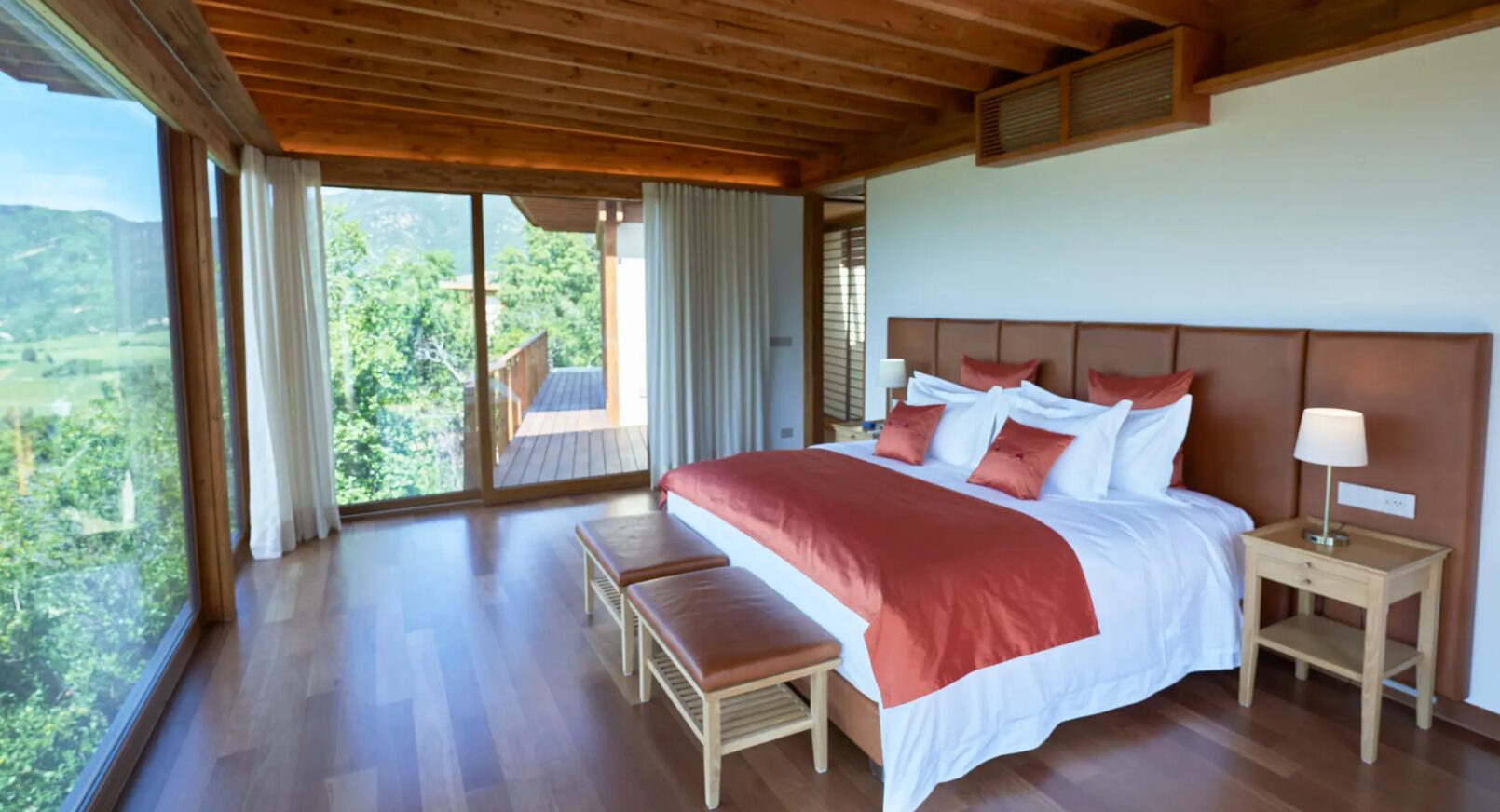 Clos Apalta Residence is an exclusive wine estate retreat set on a hillside within the Clos Apalta vineyard in Chile’s Colchagua Valley near Santa Cruz. The property consists of a small collection of private casitas and villas positioned across the slope, connected by landscaped paths overlooking the surrounding vineyards and mountains. Facilities include a restaurant focused on seasonal local cuisine, a wine cellar and tasting room highlighting the estate’s wines, a large outdoor swimming pool, and a lounge and terrace spaces oriented toward the valley views. The grounds form part of the working Clos Apalta winery, allowing guests direct access to the vineyard and cellar experiences within the estate.