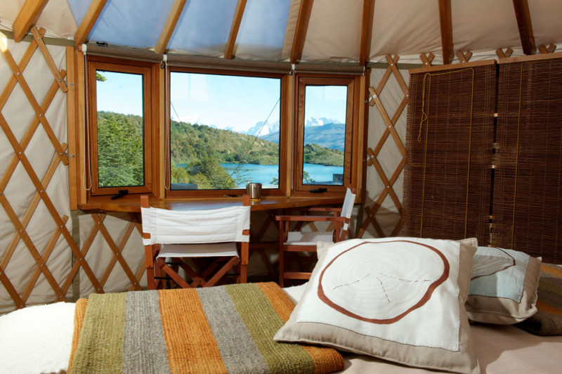 Patagonia Camp is located on a 84,000-acre private reserve amid a native coigüe evergreen forest full of ancient Nothofagus plants like lenga and notros that bloom in spring. Situated on the shores of Lake Toro, the largest lake in the Magallanes region of Chile, the lodge is just 9.5 miles from the main entrance to Torres del Paine National Park and enjoys incredible views of the Macizo del Paine. The complex at Patagonia Camp comprises 20 first class yurts, all of which have view of either Lake Toro and the Paine Massif, or the native forest, as well as a central lodge that serves as a restaurant, bar and lounge. Elevated walkways connect all of the buildings, and the site blends non-intrusively into the surroundings.