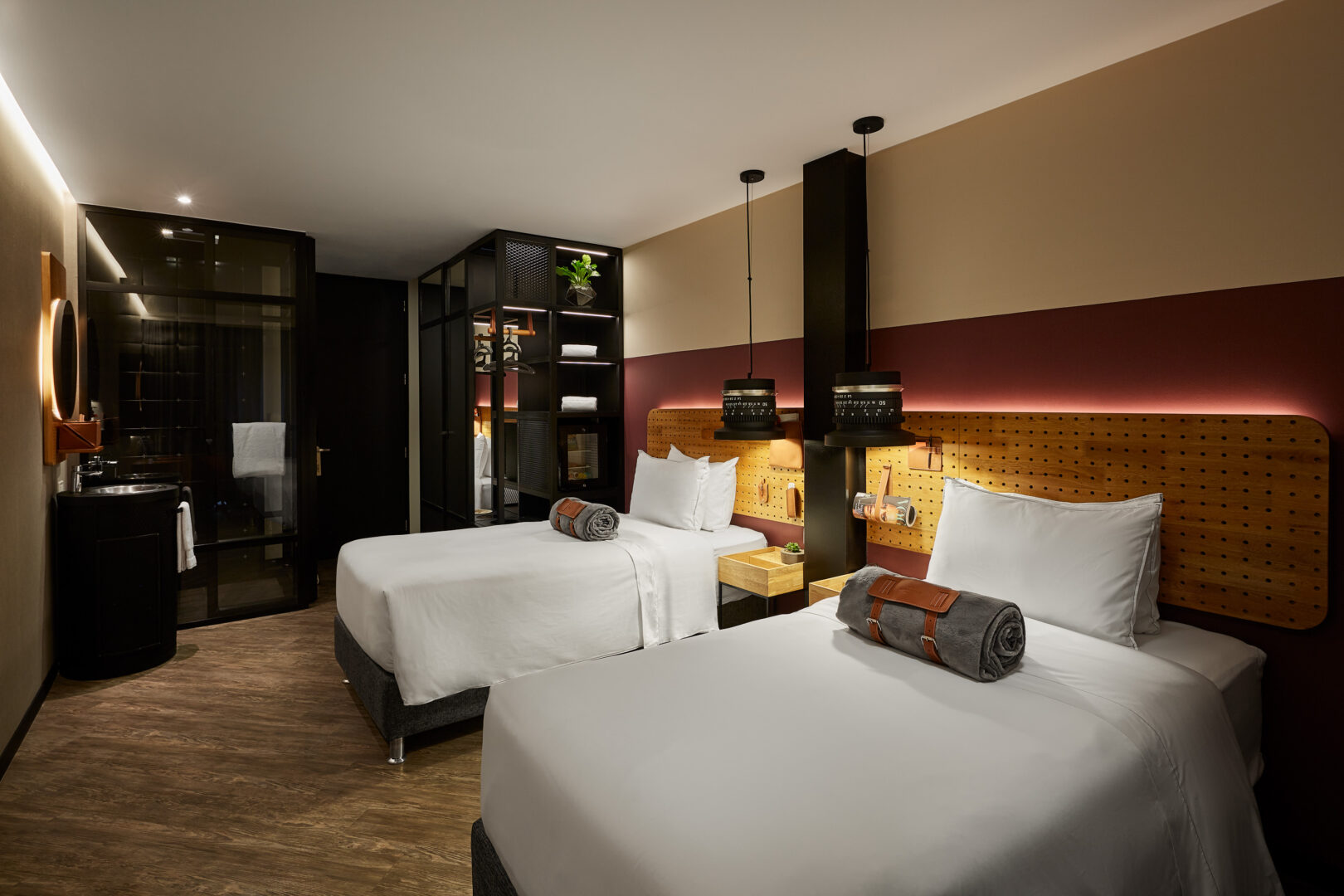 Click Clack Medellín sits in the heart of Provenza, the city’s trendiest and most walkable area filled with restaurants, shops, and bars, surrounded by green and close to both airports. The outdoor green lobby area houses an art gallery, shops, cafés, and restaurants, including wholesome comfort food at the Click Clack Kitchen. Up above, a sprawling rooftop area featuring not one, but two bars and a pool makes the most of the stunning views over the Aburra Valley.