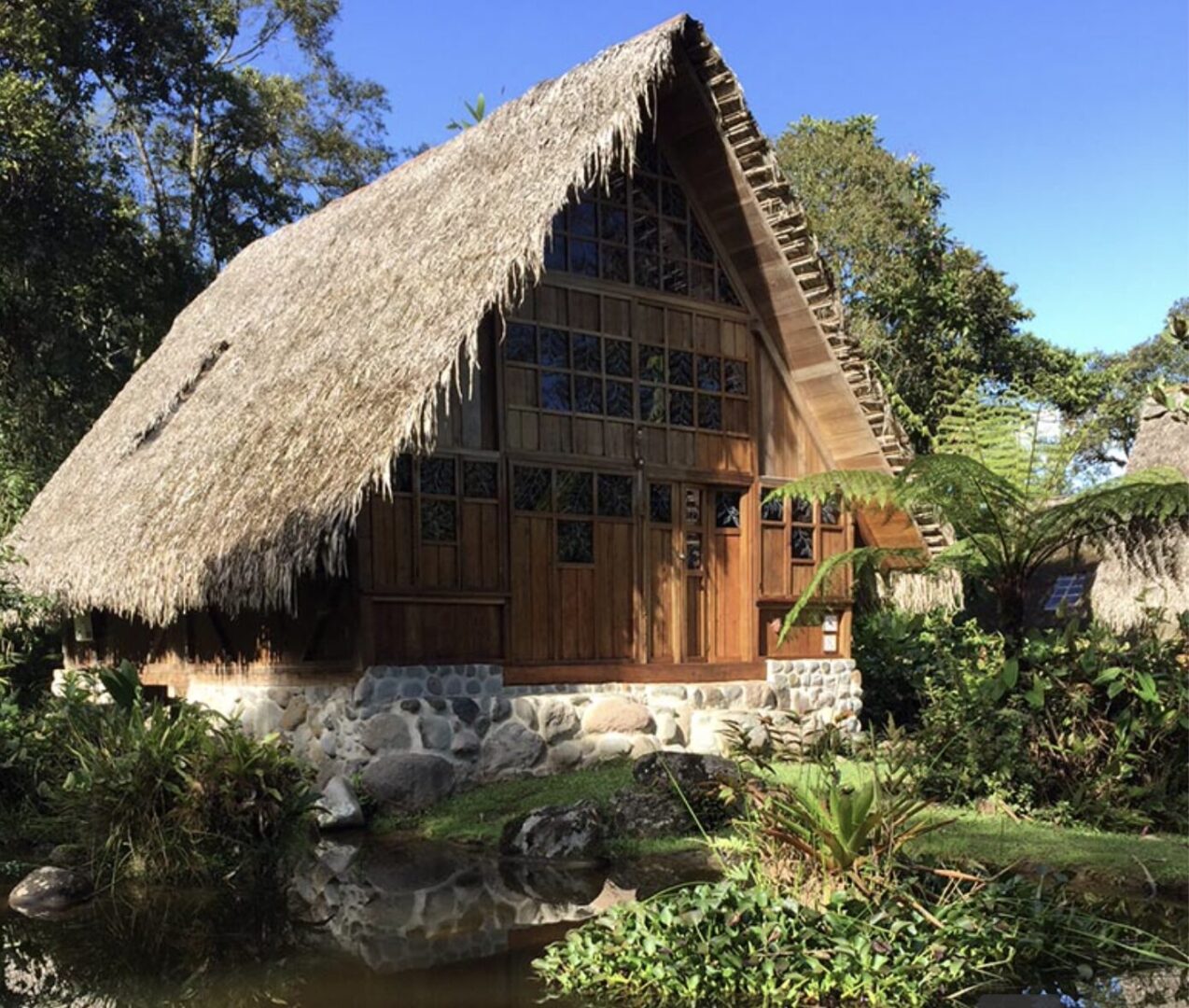 El Monte Lodge has six individual thatched cabañas and a natural swimming pool filled from the fast-flowing river that borders the property. The main house includes the kitchen and dining area, a game area, a bar, plus two open “fogatas” or fire pits. The majority of the house is open air, with expansive views of the garden and surrounding forest. Meals are mostly vegetarian, created from locally-grown organic vegetables.