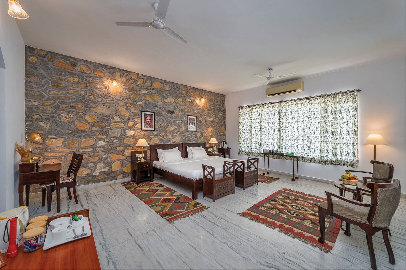 Bera Safari Lodge sits nestled in nature, offering private cottages that each have a patio looking onto incredible landscape views.Each cottage is spacious and airy, and features amenities such as Wifi, air-conditioning, tea and coffee, and more. The lodge boasts a lovely pool surrounded by loungers and communal gathering spaces and fire pits. The on-site restaurant does a mix of cuisines, and offers a variety of dining spaces, both communal and private.