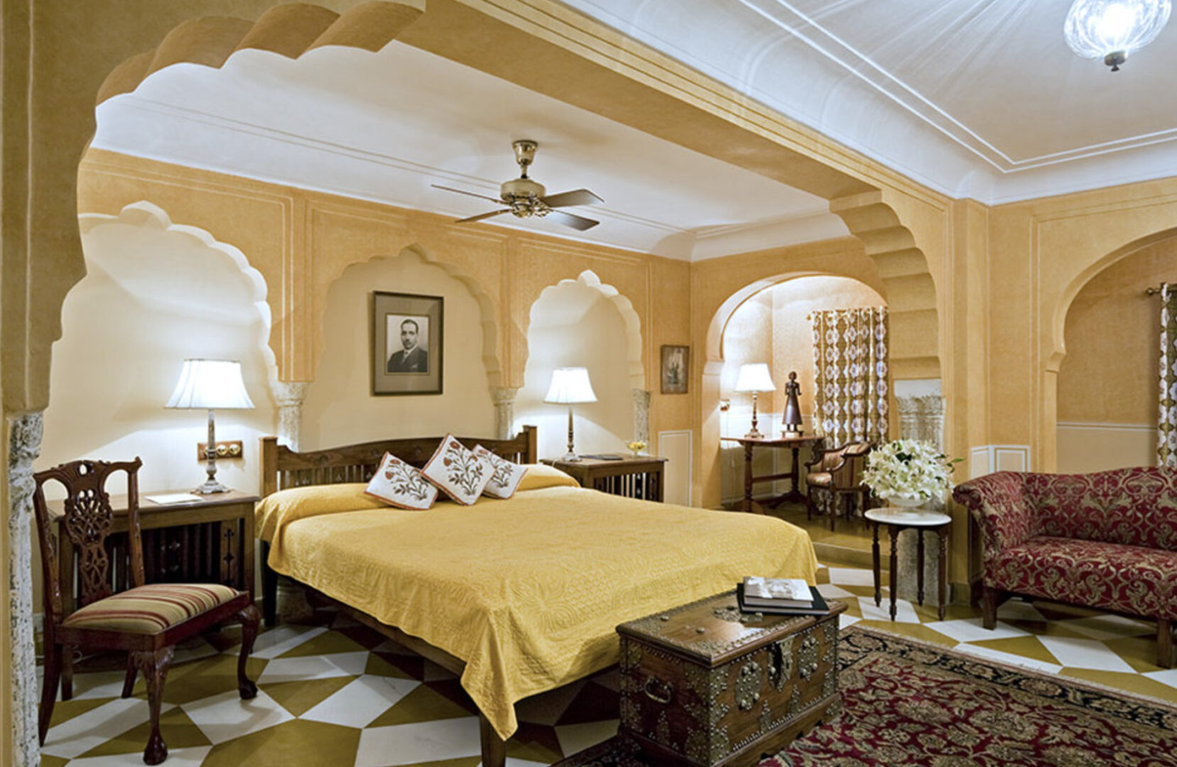 An urban oasis in the historic walled city of Jaipur, Samode Haveli is a traditional Indian mansion set in a verdant garden with apartments arranged around a series of intimate couryards. Built 225 years ago as a residence of the rulers of Samode, it is still occupied by their descendants, who have converted their home into a luxury hotel. The former royal apartments are now deluxe rooms and suites, each having a distinctive character which reflects the rich history and culture of Samode. They retain the luxuriousness of the past while at the same time offering guests modern amenities. Guests can enjoy fine dining, characterful lounge spaces, a fully-equipped gym, and large pool.