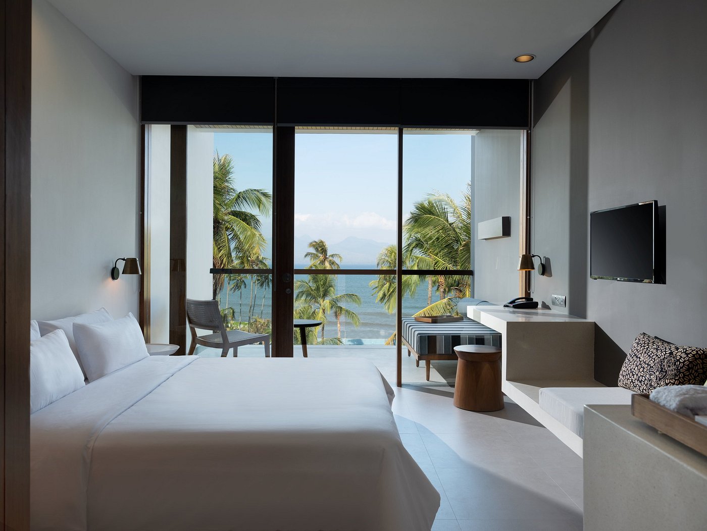 Dialoog Banyuwangi is a sleek, contemporary beachfront hotel overlooking the Bali Strait, designed with minimalist architecture and open spaces that blend sea and nature. Rooms feature floor-to-ceiling windows, private terraces, and rain showers, many with direct ocean views. The property offers a beachfront infinity pool, a spa with locally inspired treatments, and a restaurant serving modern Indonesian and international cuisine. Additional amenities include a fitness center, bar, and curated experiences such as snorkeling and cultural excursions.