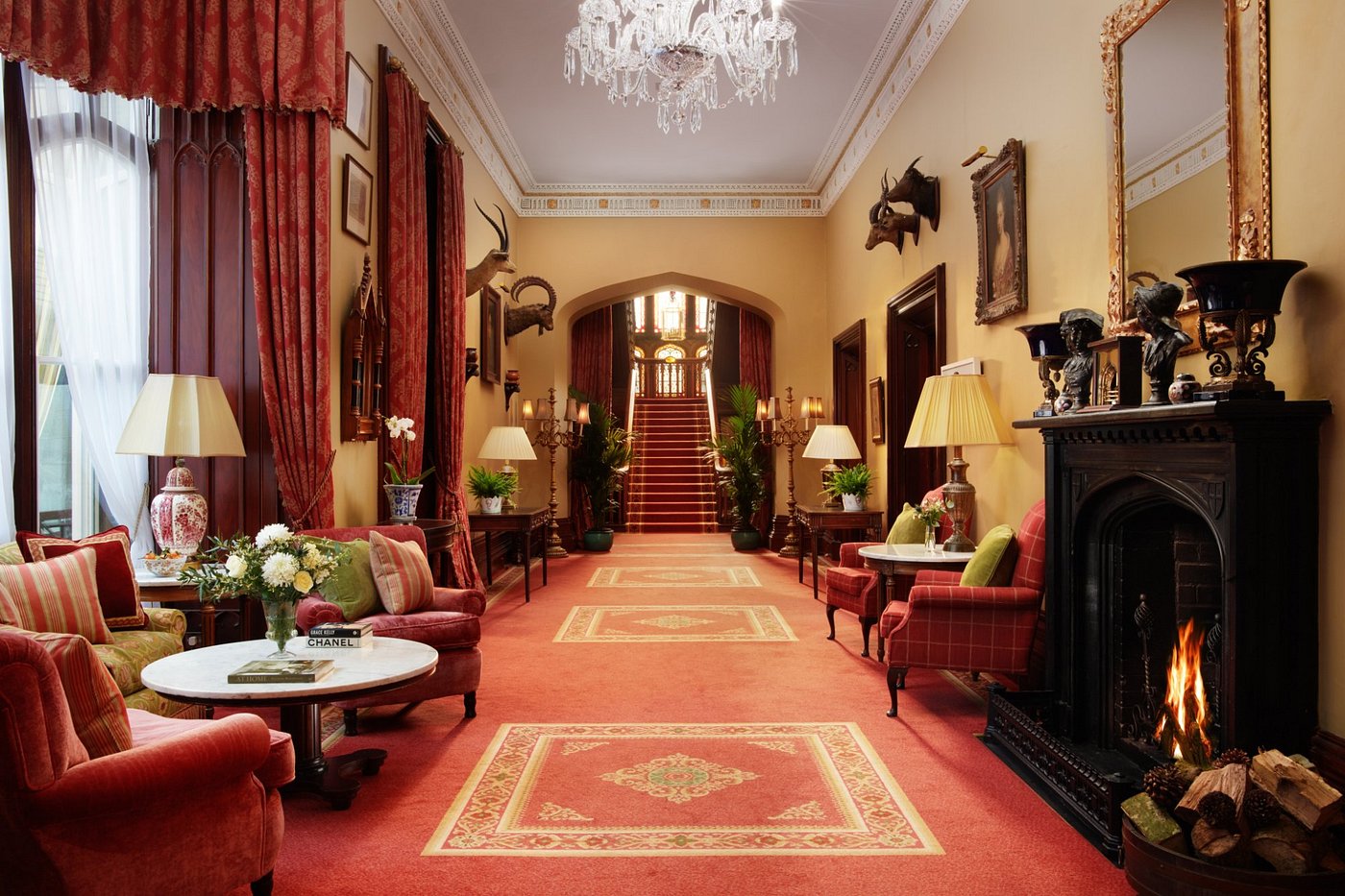 Dating back to the 16th century, Dromoland Castle Hotel is one of Ireland’s most iconic castle stays. The property has 97 rooms and suites featuring period furnishings and modern amenities, many with views over the estate’s lake and woodlands. Facilities include a fine-dining restaurant, a traditional bar, a spa with indoor pool, and an 18-hole championship golf course. The 450-acre estate offers activities such as falconry, horseback riding, archery, and fishing, along with walking and cycling trails.