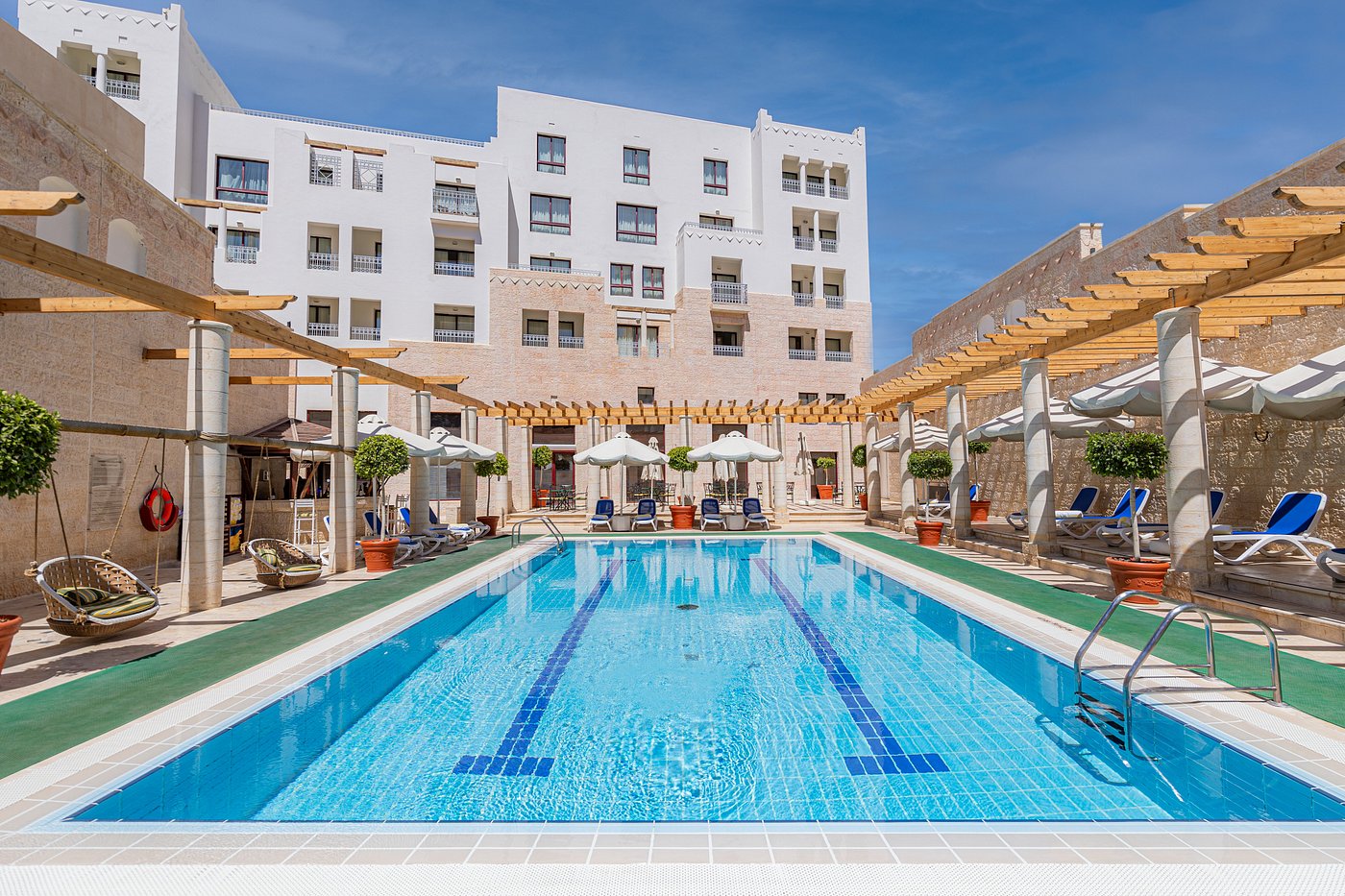 The Mövenpick Resort Petra is a 5-star resort is located directly at the entrance to the historic Jordanian city of Petra. This luxury resort with an oriental flair features an exciting combination of natural stone, handcrafted wood and Middle Eastern fabrics and textures. With 183 luxury hotel rooms and suites plus a wide variety of restaurants for your culinary cravings, the Mövenpick Resort Petra will certainly provide long-lasting memories. Indulge in a spa treatment at the Zara Spa, swim some laps in the outdoor pool or work out in the state-of-art gym. Mövenpick Resort Petra has something for everyone, ensuring a memorable stay in Petra.