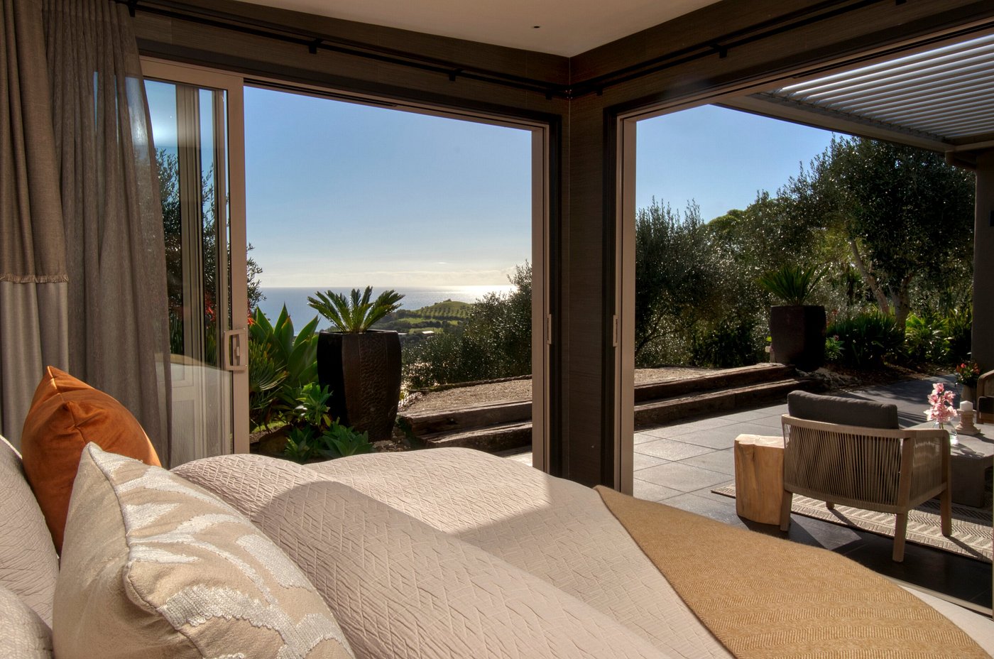 Perched on a cliffside with sweeping views over the Hauraki Gulf, Delamore Lodge is one of Waiheke Island’s most exclusive retreats. Designed in harmony with the natural landscape, the lodge features just four suites and a two-bedroom apartment, each opening onto private terraces overlooking the water. Guests enjoy world-class cuisine paired with award-winning Waiheke wines, a serene infinity pool that seems to flow into the ocean, and indulgent spa treatments inspired by Māori traditions.