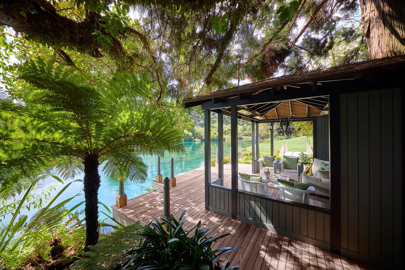 Huka Lodge is an exclusive luxury retreat set on the banks of the Waikato River near Taupo, surrounded by 17 acres of manicured gardens and native bushland. The lodge offers elegant suites and private residences, each with river views, refined interiors, and a strong sense of seclusion. Guests enjoy exceptional dining in a variety of intimate settings, from the main lodge to riverside pavilions, along with access to fly fishing, hiking, golf, and nearby geothermal attractions. With its legacy of understated elegance and world-class service, Huka Lodge is one of New Zealand’s most iconic luxury stays.