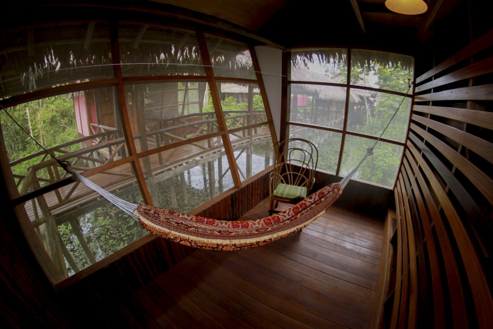 Located on the banks of the Amazon River in Yanamono's Communal Reserve, Heliconia is named for the tropical flowers that bloom in the jungle around the lodge. The lodge is accessed via an hour-long river journey out of Iquitos, during which you will get your first look at the incredible biodiversity of the Amazon River. The lodge is an eight-building complex, built on stilts in the traditional manner of the Yanamono community. The 21 rooms, restaurant, bar/lounge, and hammock bungalow are all fully screened to keep out insects, and are connected by palm-thatched corridors. The lodge is rustic, with set hours for generator-provided electricity, but extremely comfortable, and an excellent way to experience the mystery and beauty of the Peruvian Amazon Jungle.