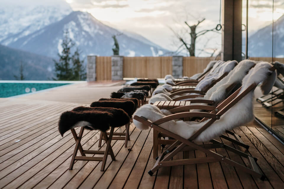Chalet Sofija is a luxury mountain lodge located in the heart of Slovenia's Julian Alps. Featuring exceptional panoramic mountain views, this modern lodge offers a heated outdoor swimming pool, chic indoor and outdoor lounge spaces, a sauna, a restaurant serving gourmet elevated Western European cuisine, and a cocktail bar.