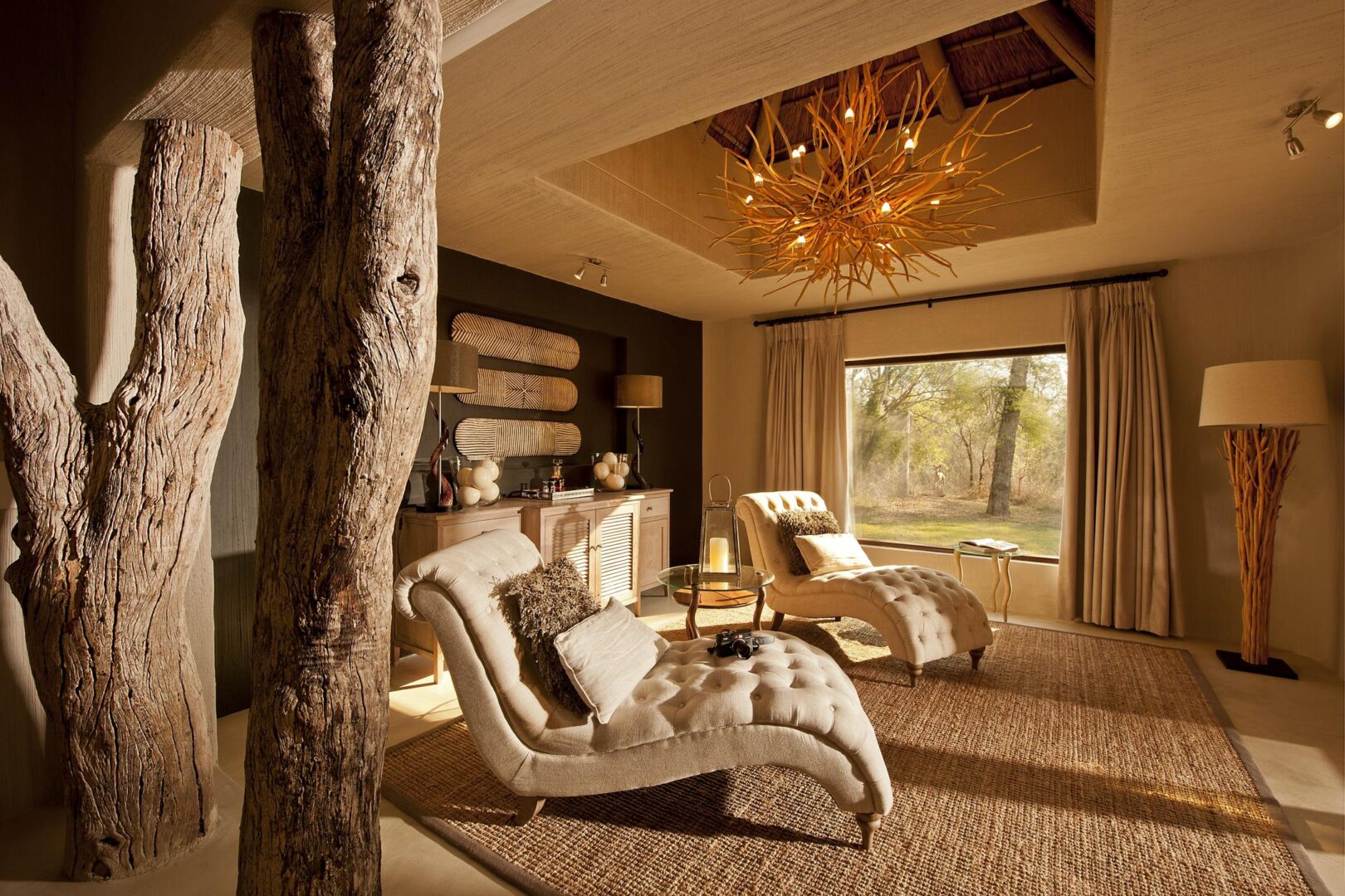 To maintain privacy and intimacy, the lodge has just 25 suites in total including 2 Luxury Villas and the Mandleve Presidential Suite. Two spacious Luxury Villas feature a master bedroom with en-suite bathroom, second en-suite bedroom, a private pool, library lounge and beautiful patio facing a waterhole. The suites are air-conditioned and feature sumptuous linen and classic leather and wood furnishings. The Mandleve Presidendial Suite features a private plunge pool and luxurious interiors with endless views of the bushveld. The suite is air-conditioned and has all the conveniences of a presidential suite with king-size bed, spacious bathroom and lounge, as well as mini bar, tea & coffee facilities and a Nespresso machine.