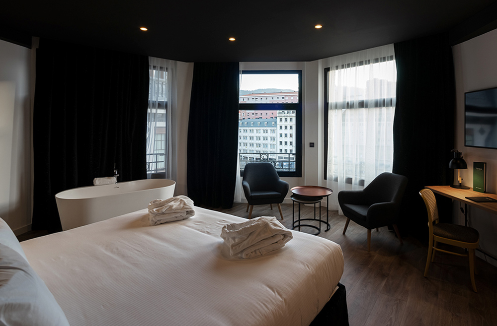 This industrial chic boutique hotel with 54 rooms is the ideal base for exploring Bilbao. Located in the heart of Old Town and overlooking the Bilbao estuary, this hotel is steeped in history as well as on the forefront of architecture and design. Tayko boasts two gastronomic options on property: one has a Michelin star and the other has the best cellar in town.