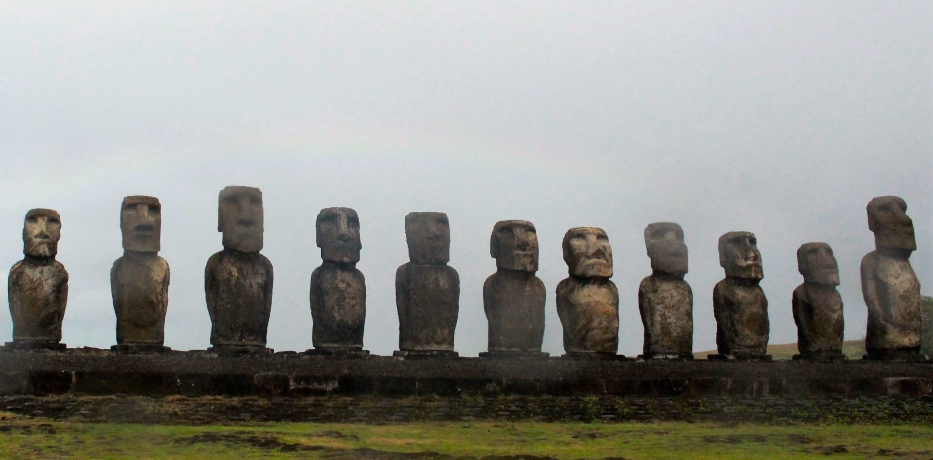 Chile_Easter-Island_Moai-Statues_Lined-up-cloudy-day