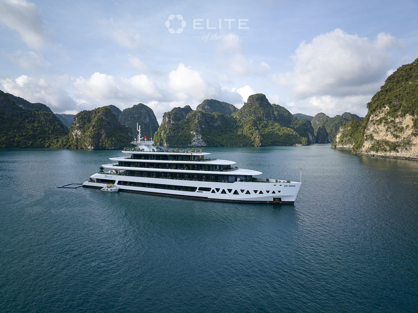 Elite of the Seas is a contemporary luxury yacht in Vietnam's Halong and Lan Ha Bay. With chic design and interiors, its many features include a rooftop infinity pool, a spa and sauna, a panoramic bar and restaurant, a wine cellar, a well-equipped gym, and even a mini golf course. Elite of the Seas has 35 elegant and spacious rooms, all offering views over the sparkling bays. Daily activities include kayaking, cooking demonstrations, Tai Chi, and more.