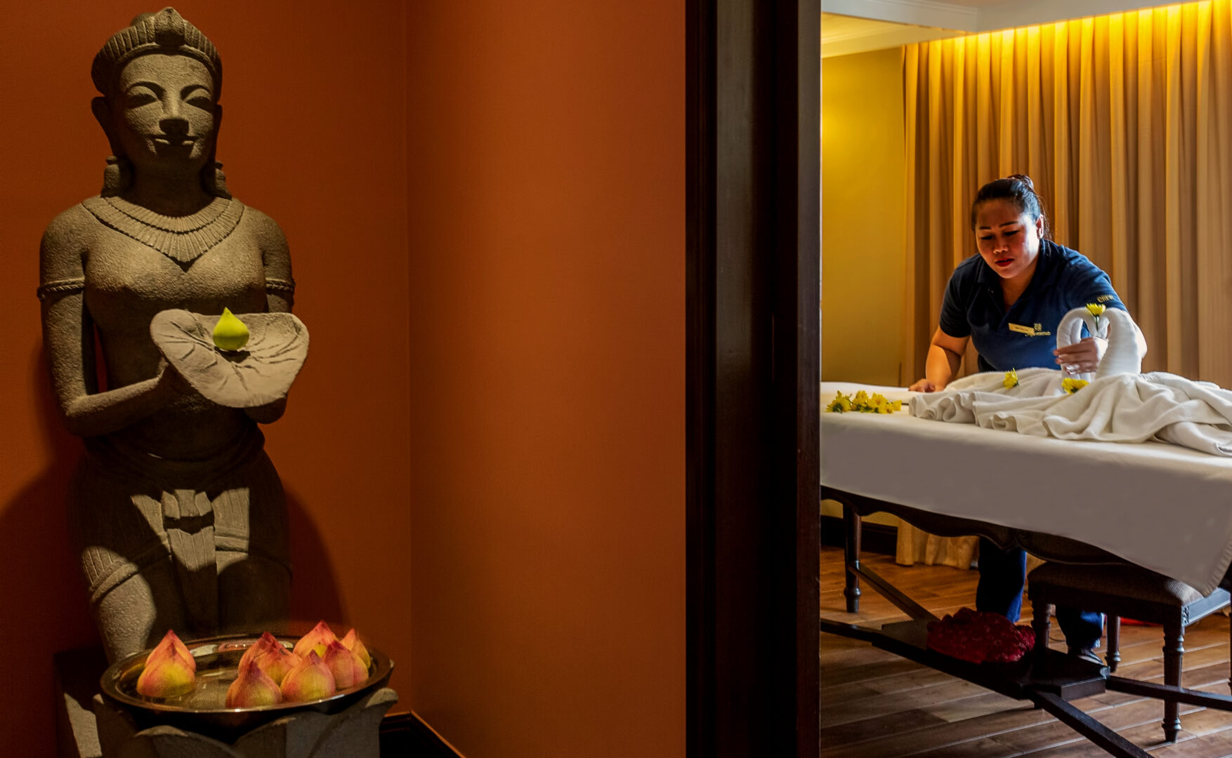The Jayavarman has 26 spacious and luxuriously-appointed cabins. Located on the main deck, there are 14 Superior Staterooms measuring 21sqm. There are 11 Deluxe Staterooms on the upper deck, measuring 30sqm. Both superior and deluxe rooms feature a private deck and floor to ceiling windows. The 2 Signature Suites are located on the upper deck. At 27sqm they’re located at the very front of the ship, offering unparalleled views from the private balcony. They’re also serviced by a private butler.