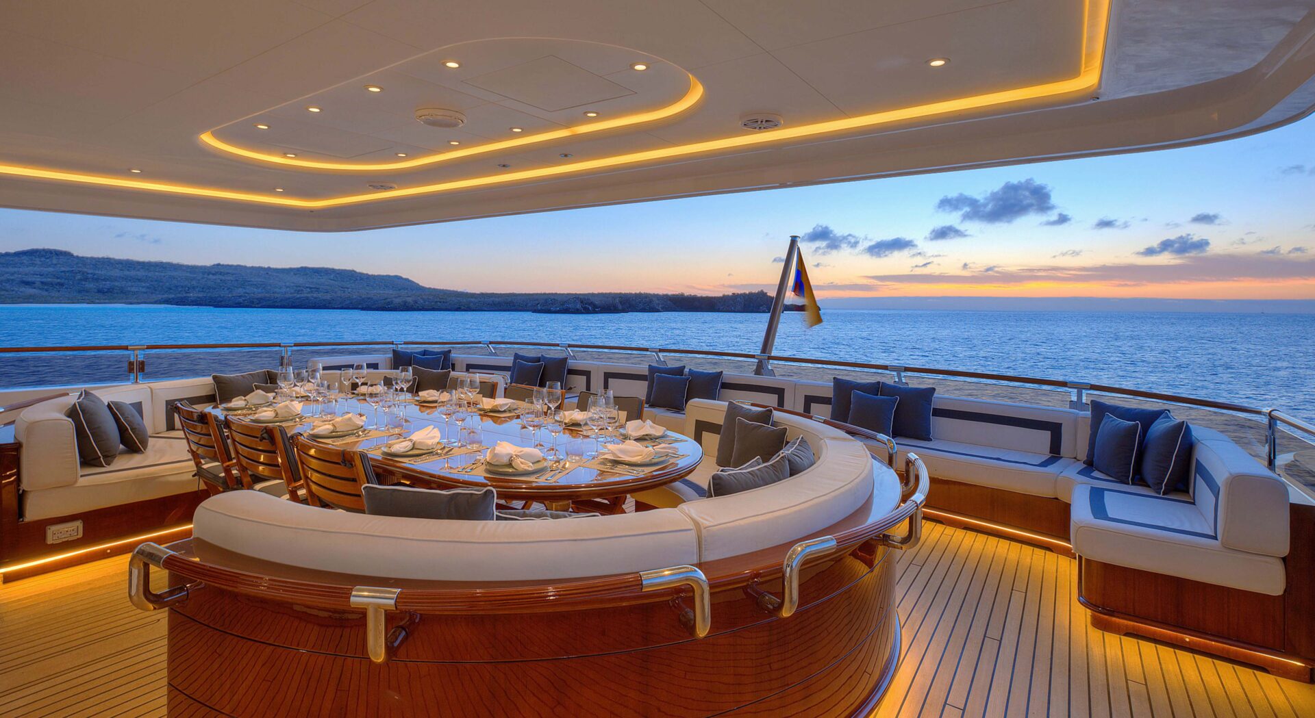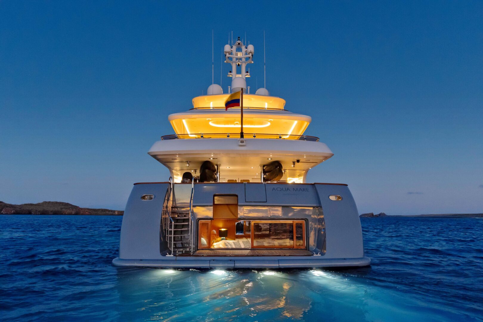 The 16-passenger Aqua Mare is a luxurious way to enjoy the islands. The yacht features both indoor and outdoor dining areas, top deck panoramic dining, an outdoor bbq area, an outdoor workout zone, a jacuzzi, sundeck, and lounge area. Excursions are led by a bilingual naturalist guide and include snorkeling and hiking. Kayaks and Stand-up paddleboards are also available.