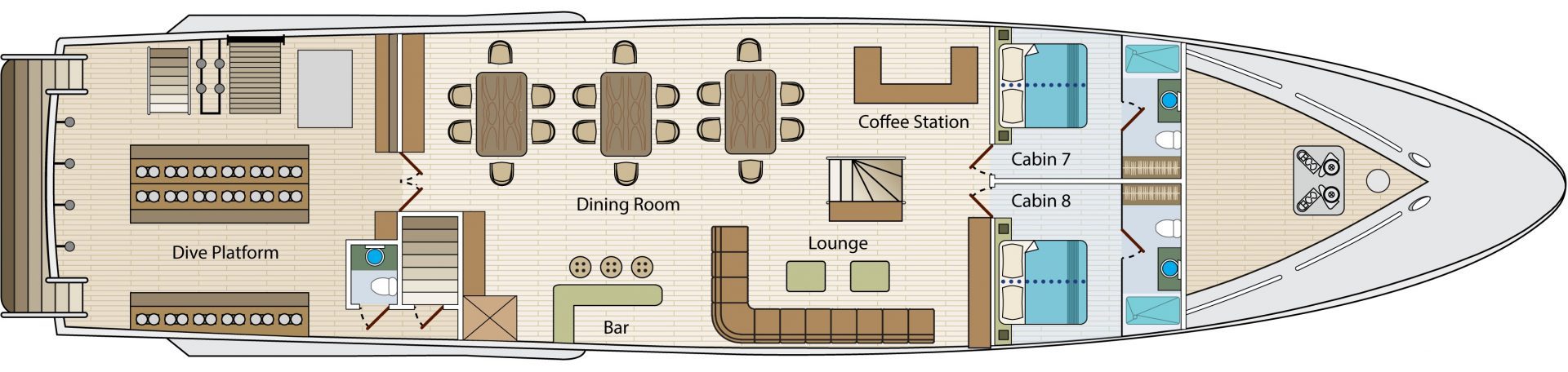 Groups & Charters: This yacht is also available for private charter or for small groups of friends or family. Its 10 cabins can accommodate up to 16 people. Inquire for more details.