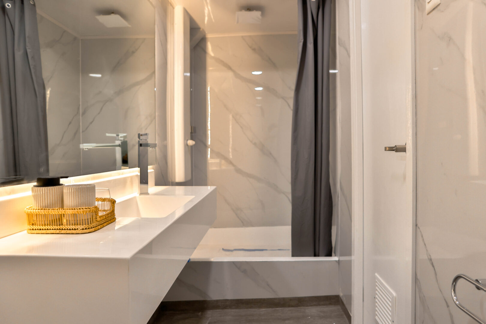 • All cabins have private bathrooms, air conditioning, hairdryer, and towel dryer.