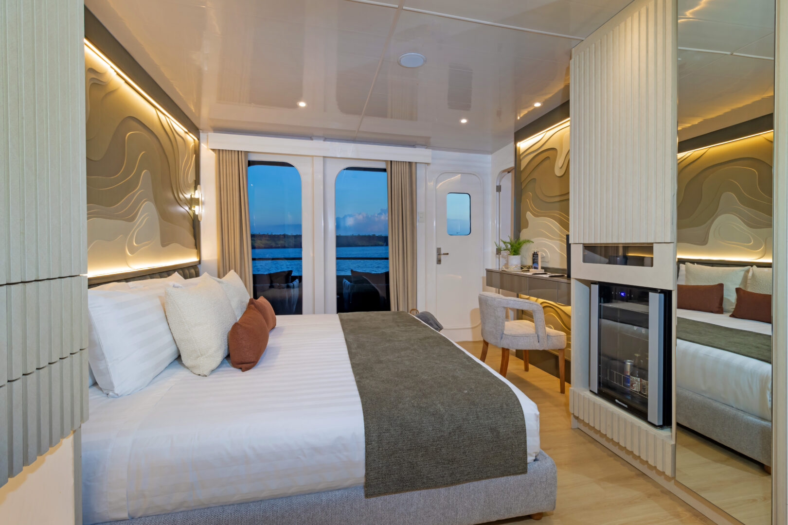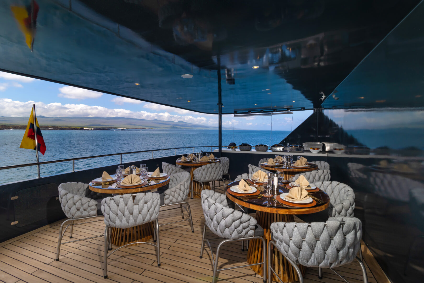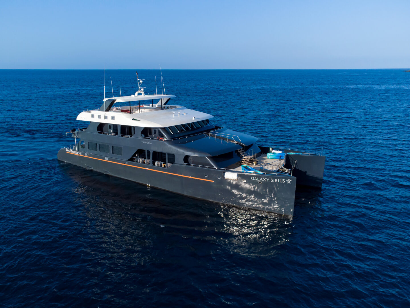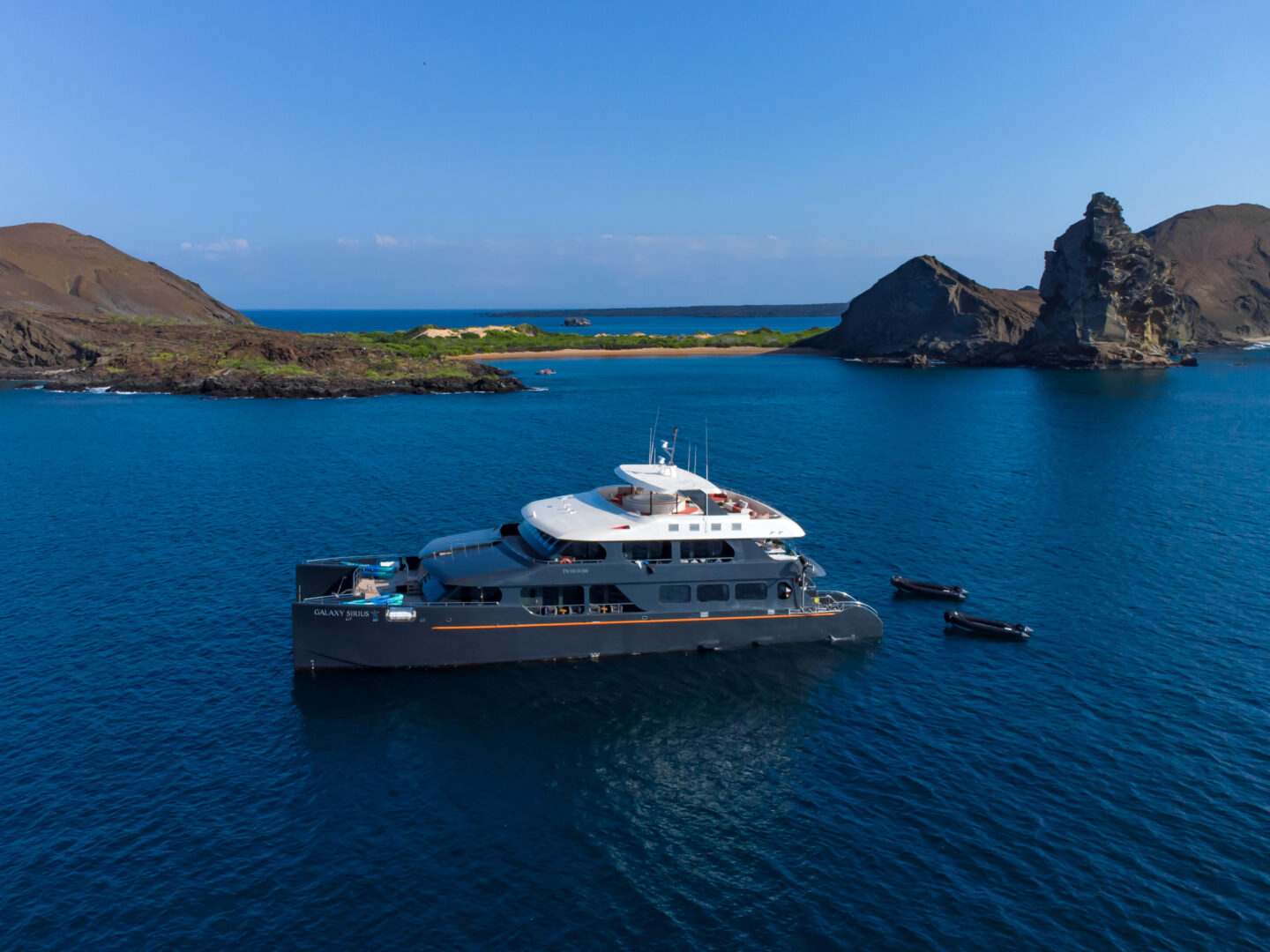 Explore the Galapagos Islands on board this 16-passenger luxury catamaran. The Galaxy Sirius offers a unique guide-to-passenger ratio of 1:8, one of the best in the Galapagos. Onboard facilities include an upscale living room, a sundeck, an alfresco lounge, a dining room, and a bar. The Sirius has two dinghies ready to explore the coasts, inlets, mangroves, and bays, and admire the Galapagos flora and fauna. Snorkeling equipment, wetsuits, and four kayaks and paddle boards are also available.