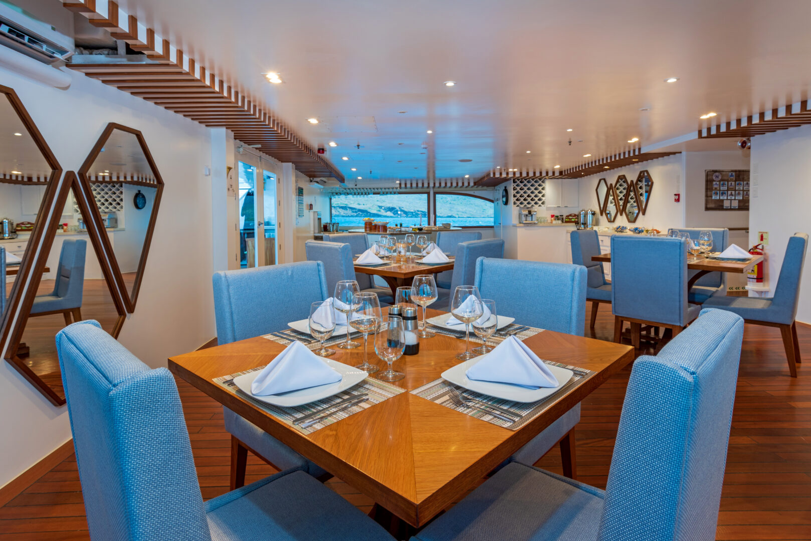 The Ocean Spray is a standout among Galapagos catamarans. Each cabin features a private balcony, allowing you to take in the islands’ dramatic landscapes from the privacy of your room. With a large sundeck, inviting social areas, and smooth performance at sea, the Ocean Spray feels both refined and relaxed. Guided daily excursions—led by expert bilingual naturalist guides—include snorkeling with sea turtles, hiking across volcanic terrain, kayaking quiet coves, and paddleboarding calm coastal waters. Consistently praised by past travelers, this is one of the most sought-after ships for exploring the Galapagos Islands.