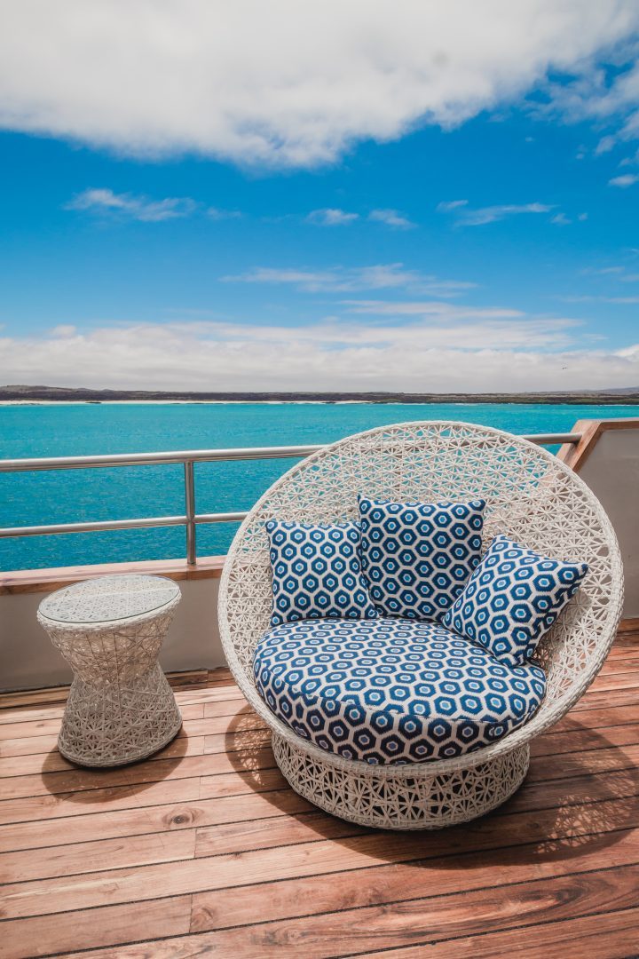 Three of the newer boats in the islands, the Origin, Theory, and Evolve are sister ships designed for a luxurious boutique experience. These 20-passenger Relais & Chateaux ships have 10 cabins with panoramic windows and feature spacious social areas, sun decks and jacuzzis, space for al fresco dining, a fitness center, spa, and a glass-bottom boat. Meals are planned and prepared by trained chefs, there is an onboard concierge for assistance, and the boats have an open bar policy. With two naturalist guides, Origin/Theory/Evolve offer some of the best guide-to-guest ratios in the islands. Excursions include snorkeling, hiking, kayaking, stand-up paddle boarding, and panga rides.