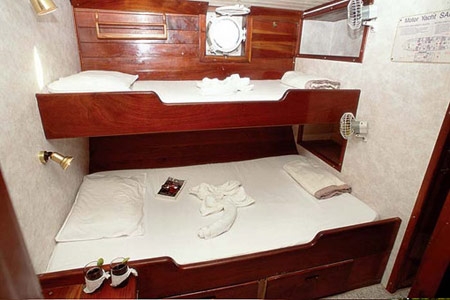 • The Samba accommodates 14 guests in 6 air-conditioned double cabins and 1 exterior double bed cabin.