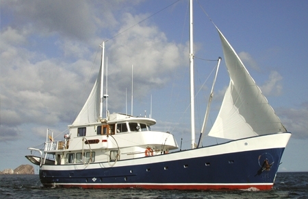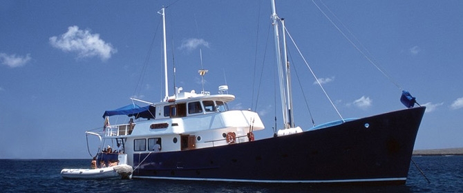 The Samba is a classic Dutch sailing vessel with teak decks. Built in 1966 as a luxury private yacht, the Samba now specializes in Galapagos Islands exploration. The ship accommodates 14 passengers in seven cabins, and features an ample dining room and salon, outdoor dining area, and a bar. The Samba is a graceful, top-quality craft, locally owned and with a great local crew. All excursions are led by a bilingual naturalist guide; excursion options include hiking, snorkeling, and kayaking.