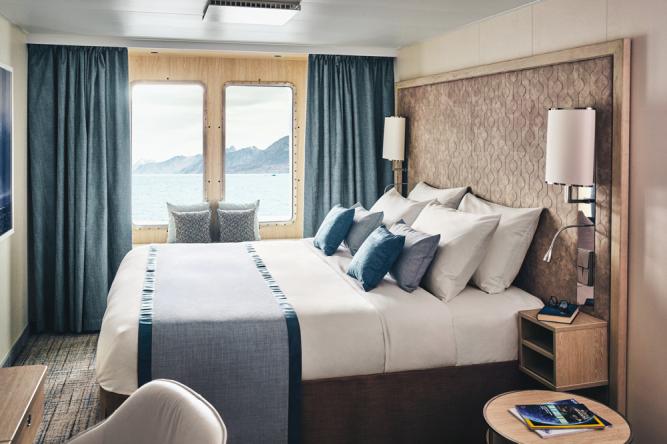 The National Geographic Endurance accommodates 128 guests in 71 spacious cabins—including 2 newly added solo cabins. All accommodations face outside and have large windows or balconies, private bathrooms, individual climate control, Wi-Fi, and an expedition command center with tablets and USB/mobile device docking.
