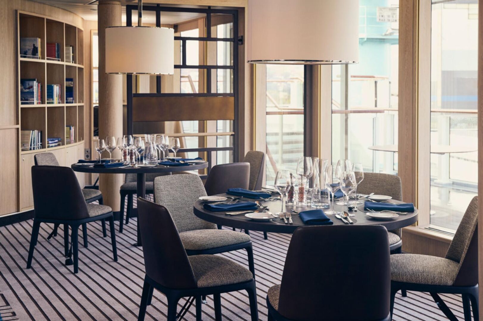 • Category 1 (Fore Deck—Standard cabin with two large windows, Alcove seating, Relax chair, 183 square ft. #406, 408, 411, 413, 415)