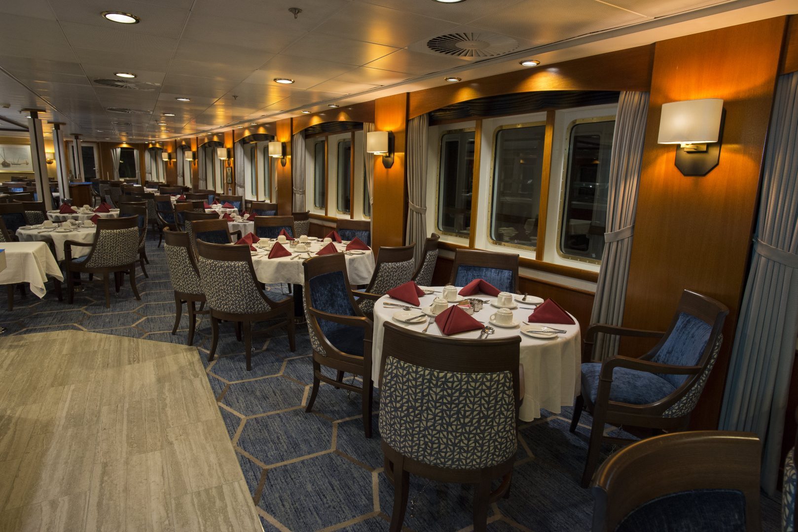 Main Deck Twin Porthole: Averaging 118 sq. ft. (11 sq. m), a Main Deck Twin Porthole Cabin is equipped with two lower berths. Located on the Main Deck, it has private facilities and a porthole with exterior views.