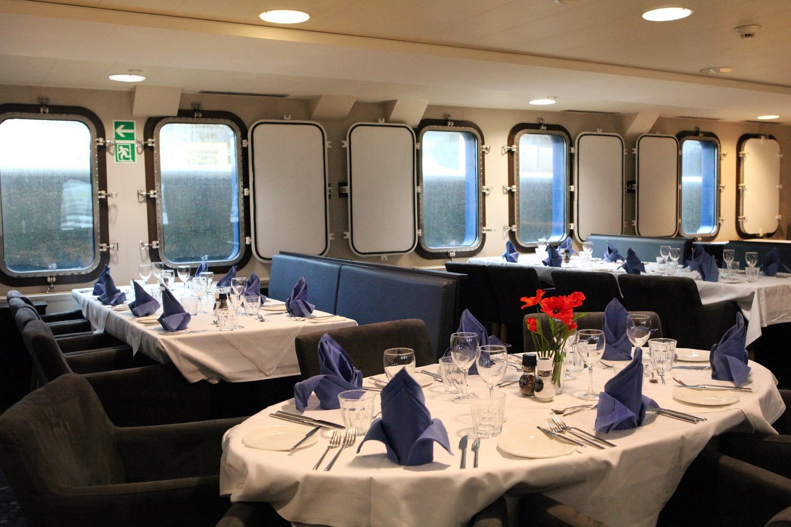 M/v “Plancius” accommodates 116 passengers in 53 passenger cabins, each with a private toilet and shower. This includes 4 quadruple porthole cabins, 2 triple porthole cabins, 9 twin porthole cabins, 26 twin cabins with a window, and 2 twin deluxe cabins (ca. 12.5 square meters) and 10 twin superior cabins (ca. 21 square meters). All cabins offer lower berths (one queen-size bed in the superior cabins and two single beds in the twin cabins) except the 4 quadruple cabins which accommodate 4 people in 2 upper and 2 lower beds, and 2 triple cabins which are set up with 1 bunk bed and 1 lower bed.