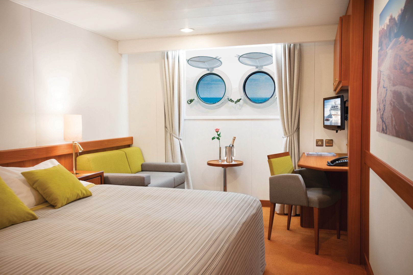 Porthole Staterooms: Staterooms with portholes and sitting area. 188 sq. ft. (17.5 m²).