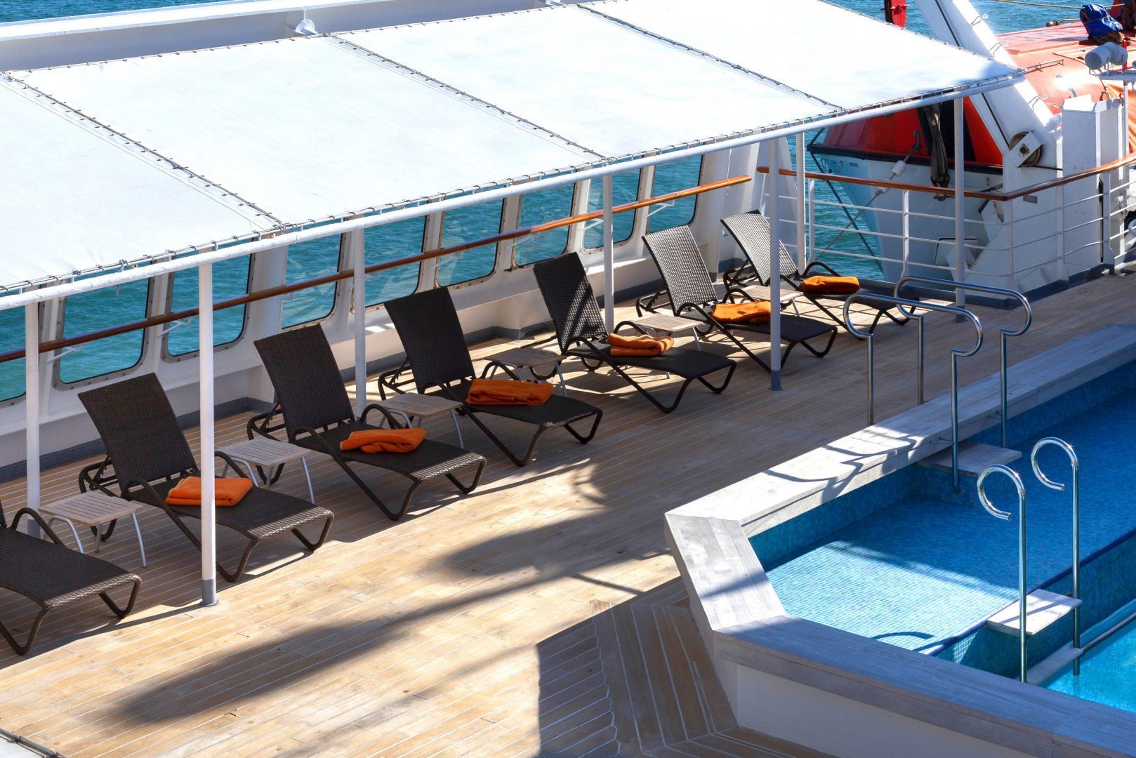 Seaventure is a new vessel launched November 2021. It features a 1-A Super ice class rating which is the highest ice class awarded to passenger vessels. This means that we will be able to explore coves, bays, and channels that other vessels can not. The ship also offers several leisure areas including a sauna, a fitness center, a custom-built citizen science lab, and a heated saltwater pool. There is also ample storage space, which means it can carry more equipment so that guests can participate in activities like kayaking, snowshoeing, and camping. The common areas are large and beautifully appointed, and the ship has two kitchens, one on the Lido deck for al fresco dining when weather permits.