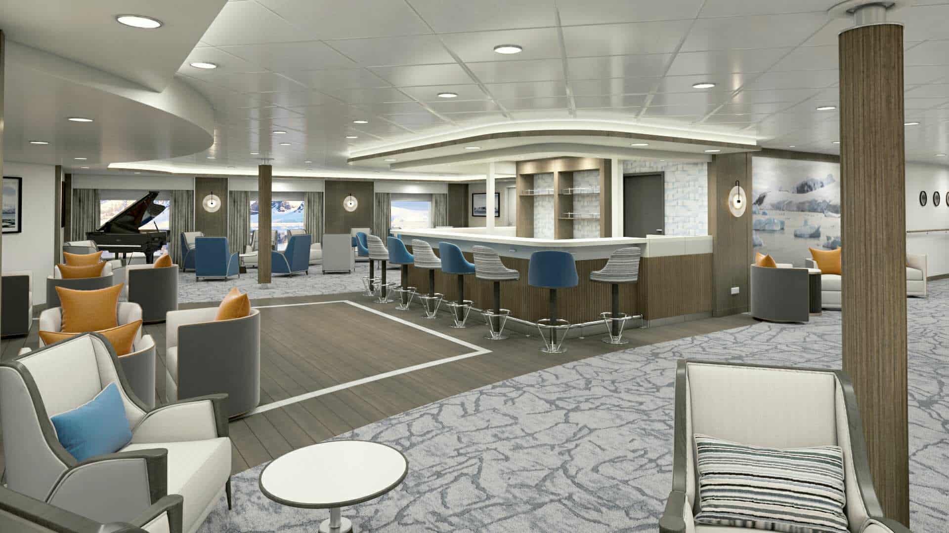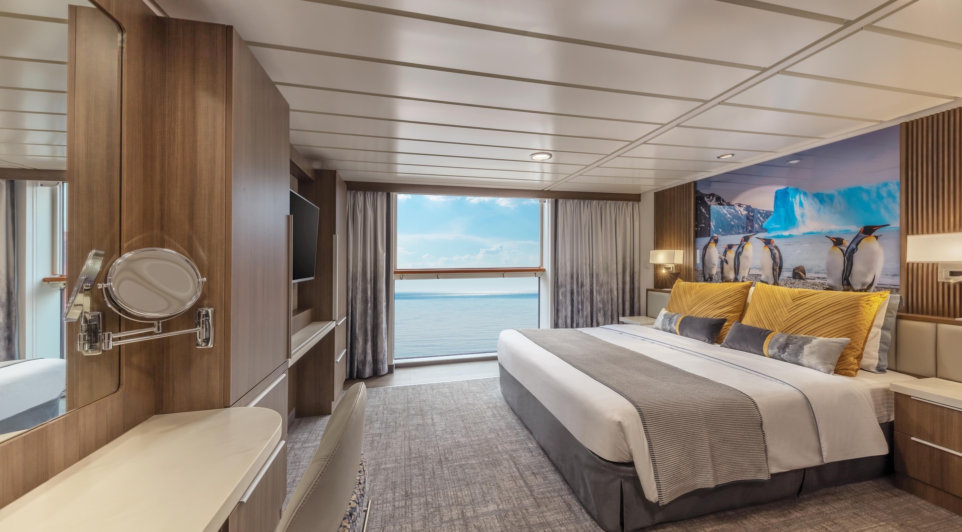 Balcony Stateroom Superior – With a bit more room to stretch the legs, the Balcony Stateroom Superior cabins are perfect for polar adventurers who travel with plenty of gear. Located on Deck 4 and 6, the Staterooms feature floor-to-ceiling windows, ensuite bathrooms, and a comfortable desk area.
