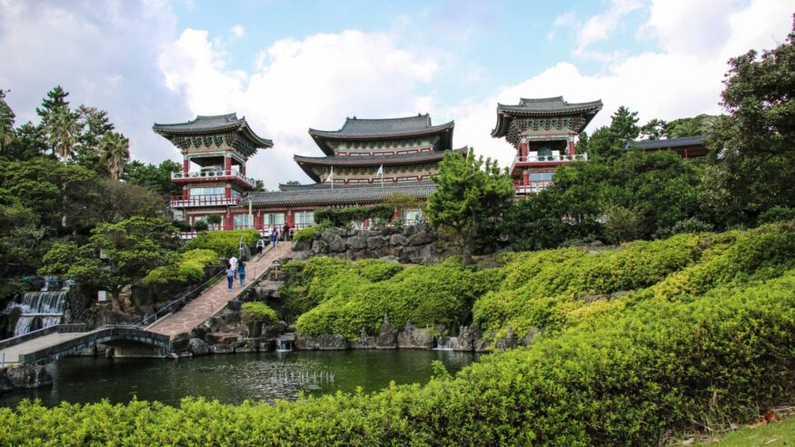 After breakfast, meet your guide for a full day exploring Jeju. Begin at Hallim Park, a beautifully landscaped botanical garden home to themed areas like Palm Tree Avenue, the Bonsai Garden, and subtropical greenhouses. Stop for lunch at a local restaurant before continuing to the O’sulloc Tea Museum. Learn about Korea’s tea culture, explore scenic green tea fields, and sample a variety of teas, being sure not to miss the museum’s signature green tea ice cream.