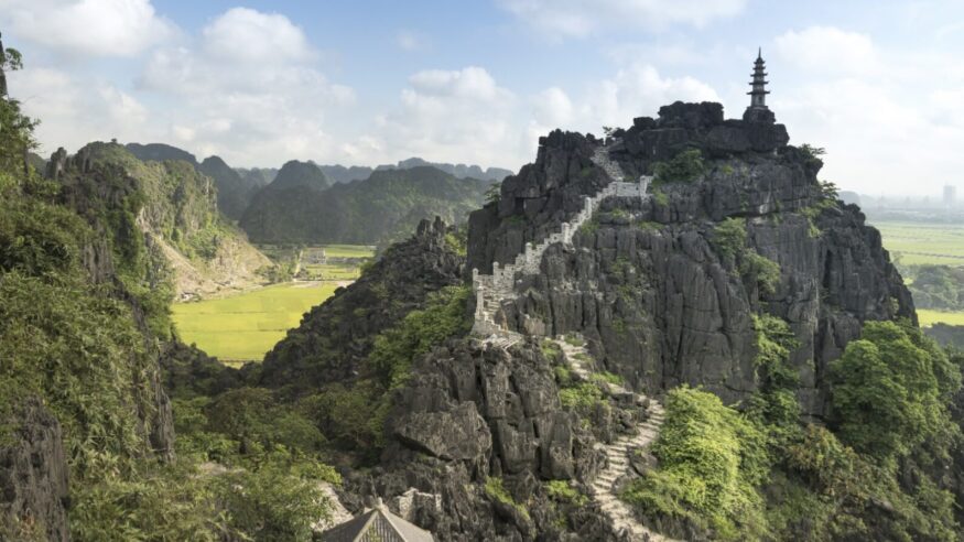 This morning, put on your tennis shoes and ascend 500 steps as you explore Mua Mountain and Cave, enjoying panoramic views from the top as your reward. Then, unwind on a one hour bamboo boat ride through rice paddies and caves in Tam Coc. Here, the boat rowers use their legs, so sit back and relax as you are propelled across the water, with lush scenery unfolding before you. After, visit charming Bich Dong Pagoda (“Emerald Green Grotto”), originally built in 1428.