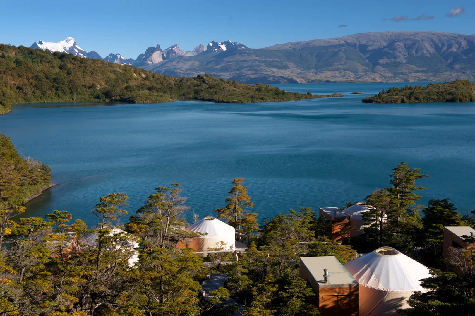 Patagonia Camp is located on a 84,000-acre private reserve amid a native coigüe evergreen forest full of ancient Nothofagus plants like lenga and notros that bloom in spring. Situated on the shores of Lake Toro, the largest lake in the Magallanes region of Chile, the lodge is just 9.5 miles from the main entrance to Torres del Paine National Park and enjoys incredible views of the Macizo del Paine. The complex at Patagonia Camp comprises 20 first class yurts, all of which have view of either Lake Toro and the Paine Massif, or the native forest, as well as a central lodge that serves as a restaurant, bar and lounge. Elevated walkways connect all of the buildings, and the site blends non-intrusively into the surroundings.