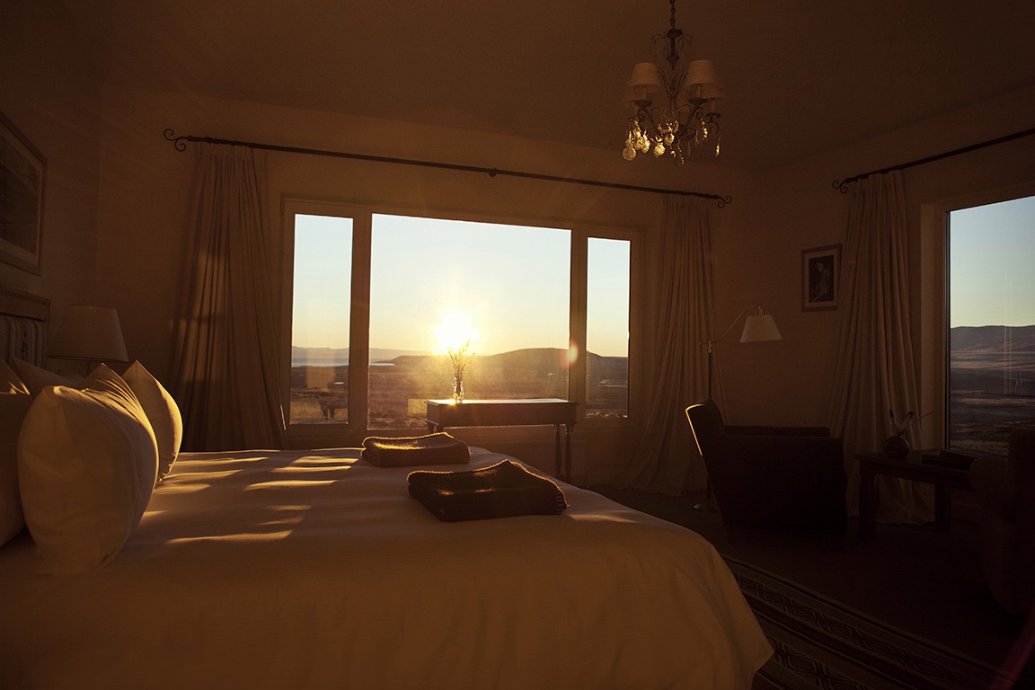 Eolo is located on the side of a small mountain about 40 minutes outside El Calafate, on the way to the Perito Moreno Glacier. A Relais & Châteaux property, the 17-suite Eolo is the most refined accommodation in the area, with superb service, beautiful rooms, and excellent views of the surrounding Patagonian steppe and Andes. This remote lodge sits on a 10,000 acre property evoking the traditional Patagonian estancia, with views of Lago Argentino, La Anita Valley, and Torres del Paine. The lodge offers a restaurant and bar, library, outdoor jacuzzi, and sauna. Its privileged location between the town of El Calafate and Perito Moreno Glacier means that it is a shorter drive to view the glacier and is far removed from the increasing sprawl of the town.