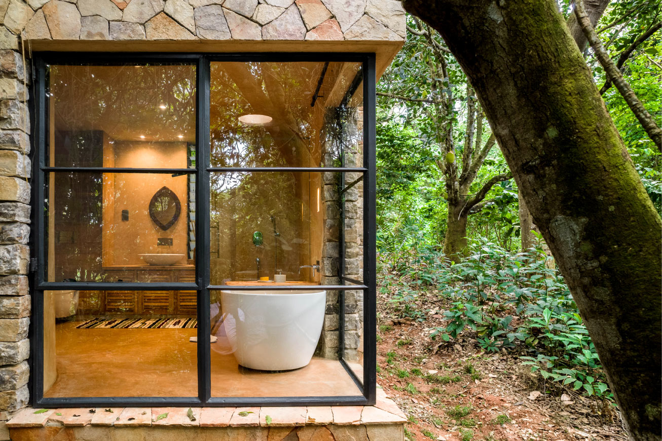Built with minimum interference to its natural forest environment (in a Sal forest near Kanha National Park), managed on eco-friendly principles, use of communal spaces to reduce large built structures