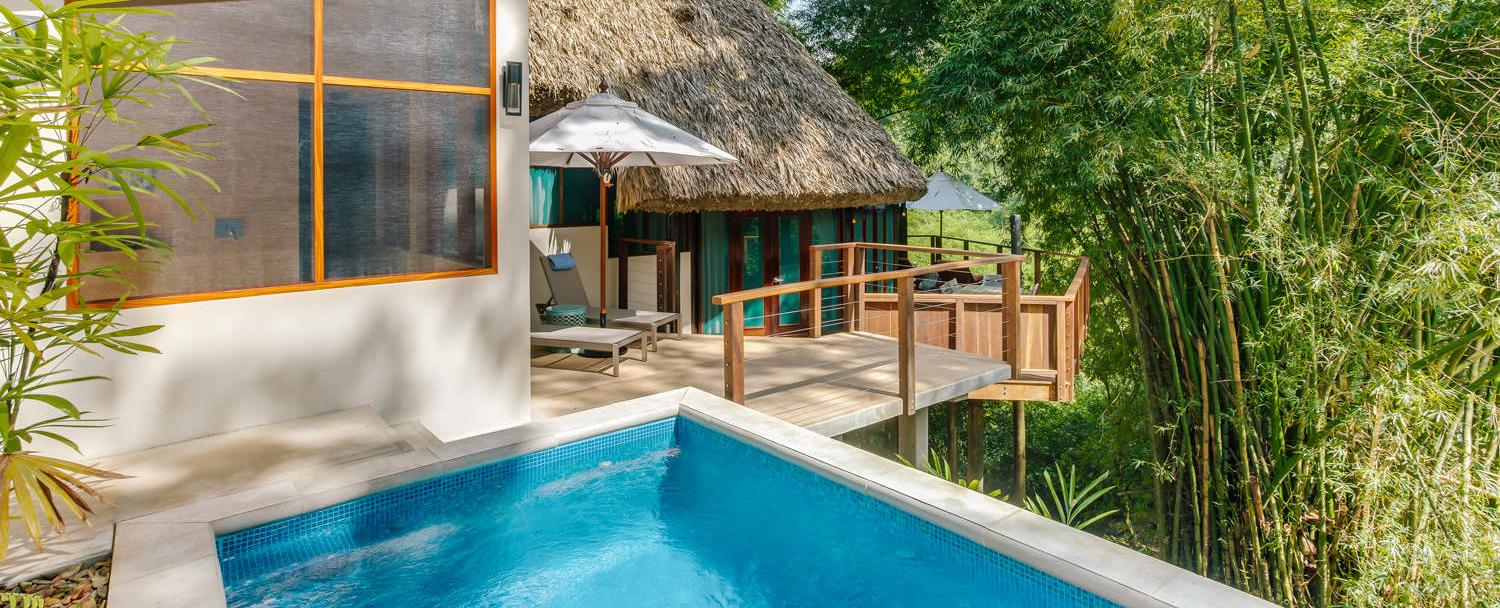 Chaa Creek is composed of 23 palm-thatched cottages and offers a unique, luxurious base for adventures in the rainforests of Belize. This private, 365-acre nature reserve sits along the banks of the Macal River in the foothills of the Maya Mountains. Explore the nature trails that wind around the property, and get to know the local wildlife: a diversity of exotic jungle dwellers make their home in the area, including peccaries, jaguars, monkeys, and over 300 species of tropical and migratory birds. The lodge offers a restaurant, spa, infinity swimming pool, butterfly exhibit, organic farm, and horse stables.