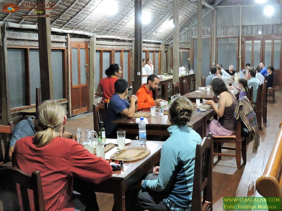 The Chalalán Ecolodge is set in Madidi National Park, on the shore of Chalalán Lagoon. The lodge is constructed of local materials in the traditional building style of the local community, San José de Uchupiamonas. The project was designed and is run by the Uchupiamonas community, and evinces a strong commitment to community development and wildlife preservation. The 14 traditional Tacana-style cabins are surrounded by virgin forest; each cabin is equipped with mosquito nets, a veranda or balcony, and hammocks. The property includes a dining room and bar.