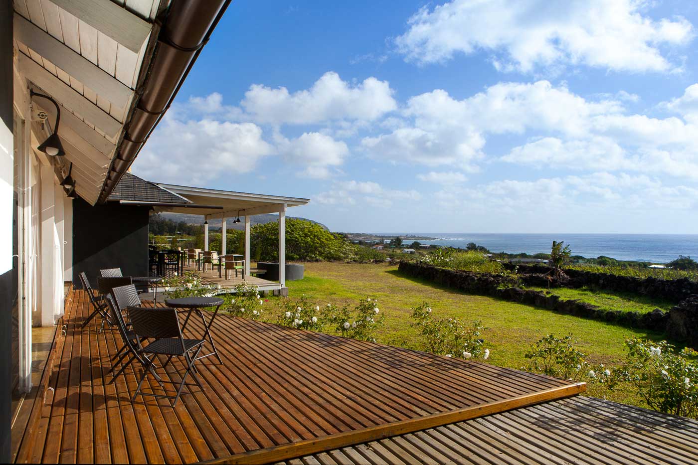 Altiplanico Rapa Nui was designed in the style of the traditional Rapa Nui boathouse, with nice gardens and a swimming pool with views of the sea. Exterior corridors of stone, sand, or grass separate each of the rooms. Bathroom showers open to the outdoors and provide a feeling of being in touch with nature. A good option on Easter Island for those looking for a smaller, boutique lodge experience.