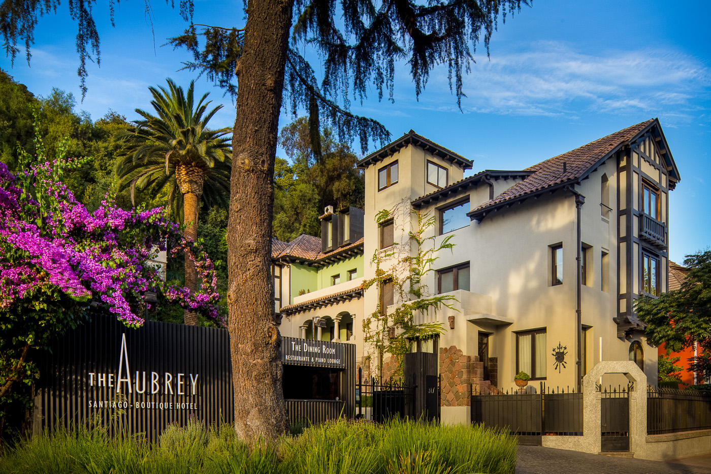 The Aubrey, located in Santiago’s lively Bellavista neighborhood, sits at the foot of the San Cristóbal Hill within the city’s Parque Metropolitano, one of the largest urban parks in the world. The hotel has 15 uniquely-designed rooms, most with balconies and terraces. The Aubrey was built in a renovated 1920s mansion and its neighboring house, linked by Mission-style stone terraces and a heated swimming pool. The hotel offers a restaurant and piano lounge, pool, spa, and loaner bicycles, and is within easy reach of Santiago’s top areas and attractions.