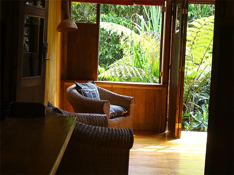 To enter the lodge, you cross the river by “tarabita,” a hand-pulled cable car that is large enough for two people to cross at a time. (Your luggage will be pulled across separately.) The cable car gives the lodge a sense of privacy from the outside world, while also providing access to the lodge and the buffer zone to the Mindo-Nambillo Protected Reserve.