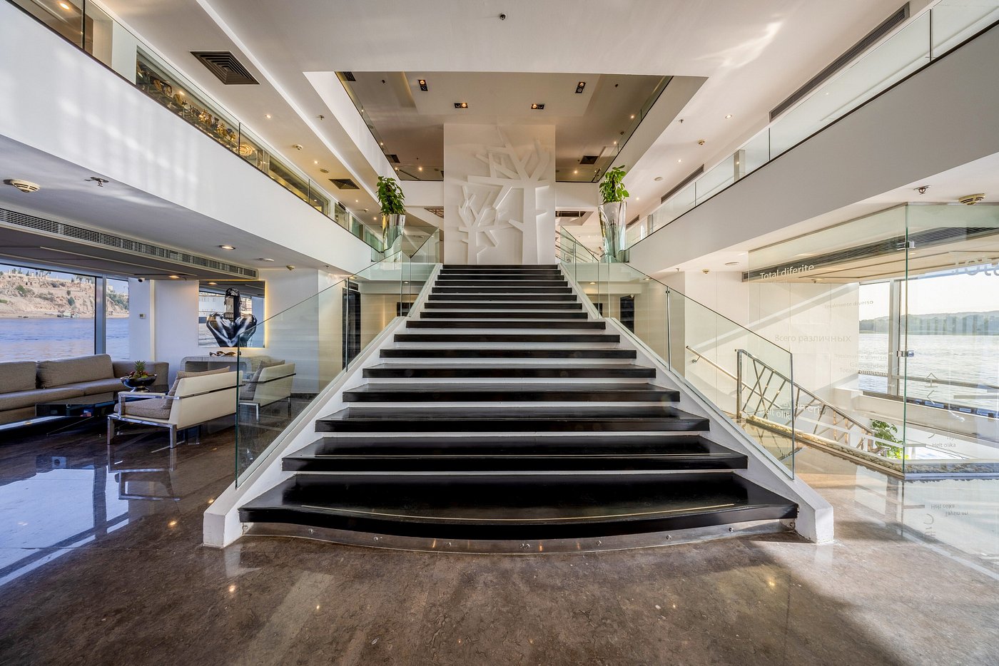 Farah is a luxury cruise ship that sails along the Nile River between Luxor and Aswan in Egypt. It offers 56 deluxe cabins and 2 Royal Suites, all outfitted with handmade Egyptian cotton sheets and handmade furniture. The ship offers a variety of facilities and amenities such as a large swimming pool on its sundeck, ample indoor and outdoor lounge spaces, a library, a restaurant and bar, a gym, a spa including a steam room and sauna, a hairdresser, and more.