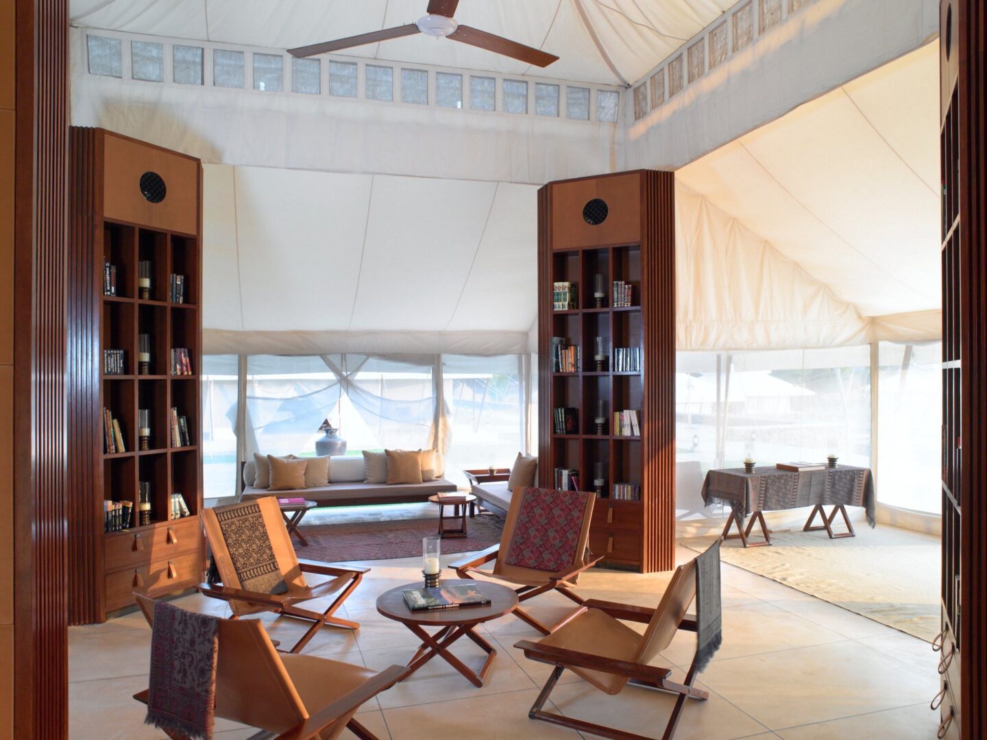 Situated on the threshold of the reserve, this intimate tented camp offers incomparable privacy and daily safaris seeking out the reserve’s wildlife. Aman-i-Khas offers spa therapies, swimming in a beautiful stone pool, and thoughtfully curated menus. The camp’s ten expansive and luxurious tents overlook a ruggedly beautiful landscape that is home to abundant wildlife. Positioned to ensure utmost privacy, the Tents offer soaring living spaces decorated with classic furnishings. The light-filled bathing area features a free-standing bathtub and shower, while the living room has twin writing desks.