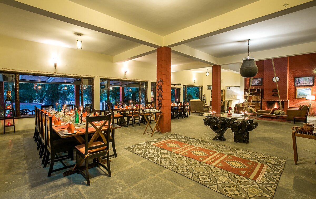 Located within walking distance of Bandhavgarh National Park’s main gate, Bandhavgarh Jungle Lodge has twelve thatched double–bedded cottages around an inner courtyard. There are two separate villas with further accommodations of eight rooms. A spacious thatched dining room serving home cooked Indian food and Continental cuisines becomes the center point of activities like campfire performances, lectures, and star gazing. The estate has meadows that attract deer and fruit trees that are home to birds and butterflies. An occasional alarm call from the jungle close by alerts you when tigers are nearby.