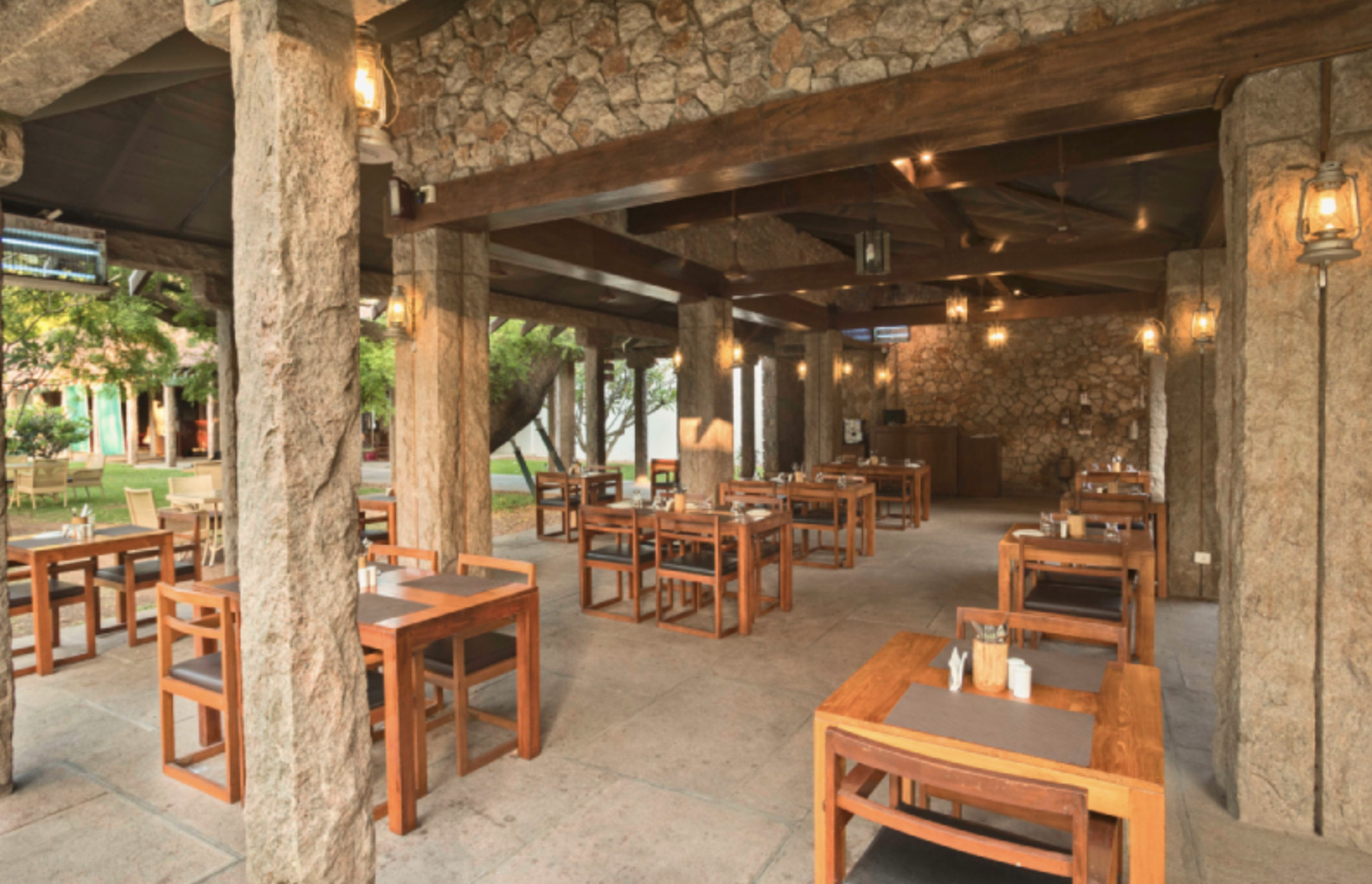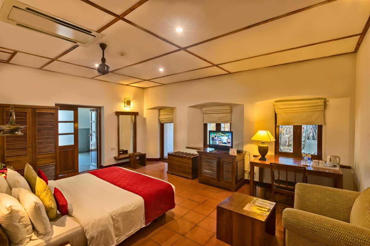 Heritage Madurai is a resort located on 17 acres of manicured gardens. Lounge by the Olympic-sized temple tank pool, enjoy your private plunge pool at your villa, dine under a 200 years old banyan tree, and take advantage of having a personal chef. Located 15 minutes by tuk-tuk away from the center of Madurai, this hotel is an ideal space for quiet and peace away from the bustling town. There's an on-site restaurant, bar, gym, and coffee shop.