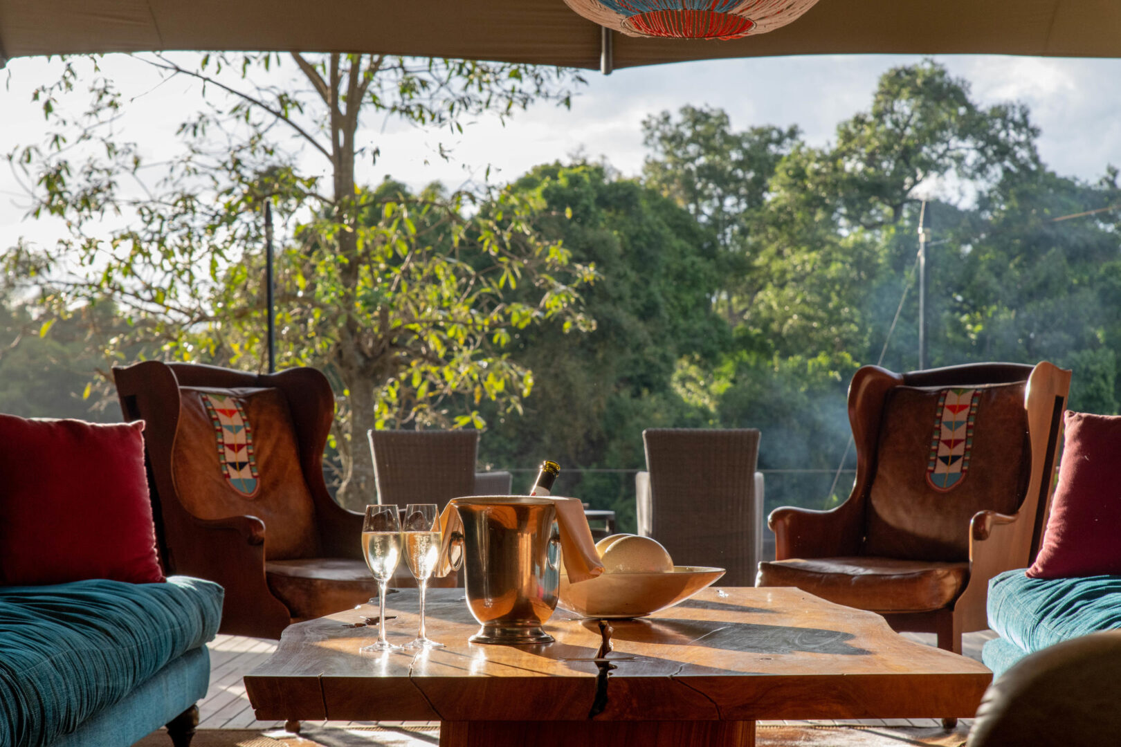 Il Moran Camp is hidden in the cool shade of the riverine forest that follows the bends of the Mara River. Each tent enjoys a private location from which to enjoy the beautiful and serene setting. Hippos wallow in the river waters below, elephants wander through camp, and the nighttime is punctuated by hyena whoops and lion calls.